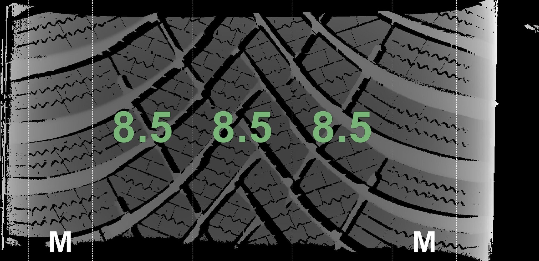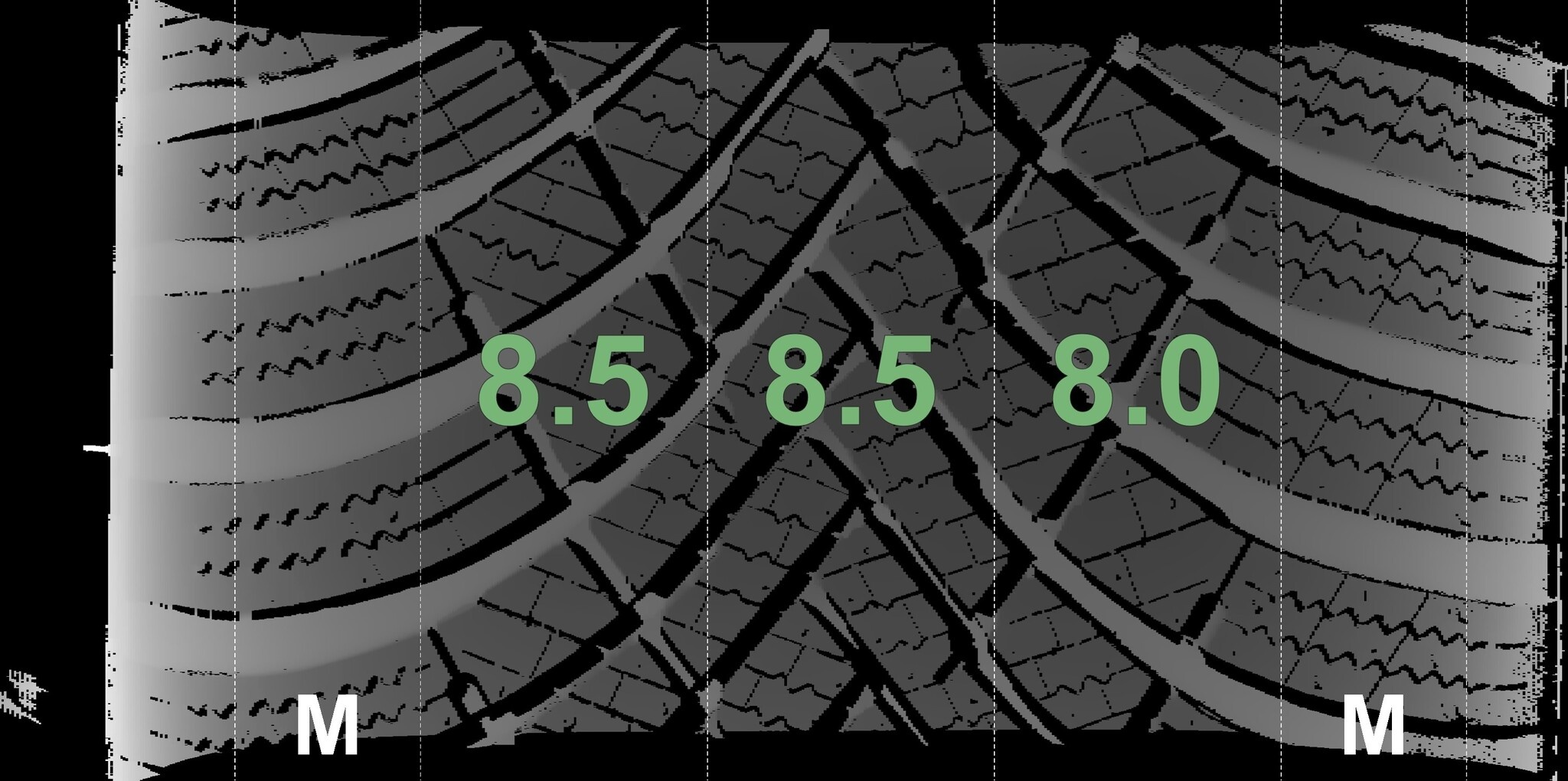 De gemeten profieldieptes en de details van de velgen zijn hierboven weergegeven.