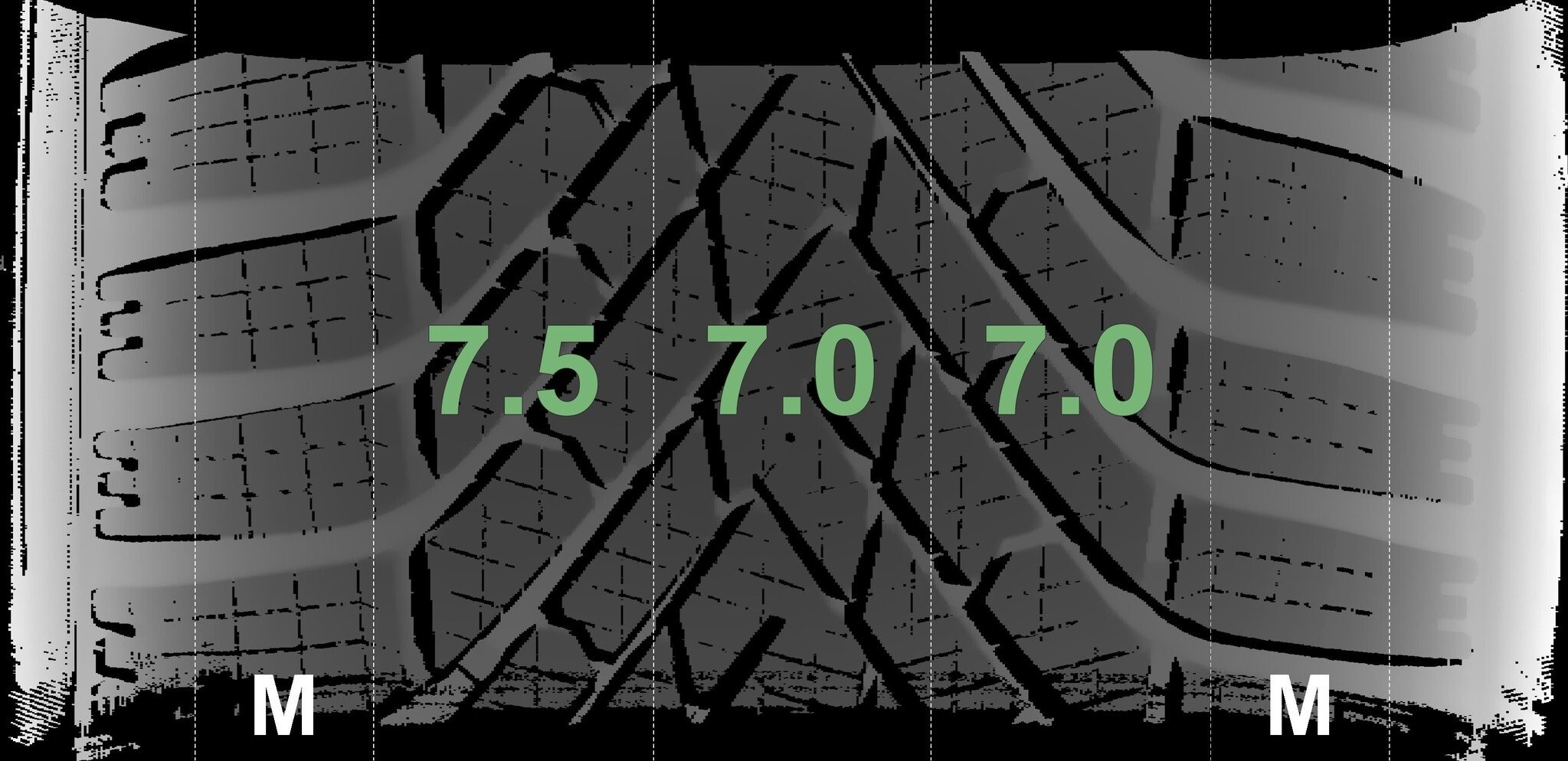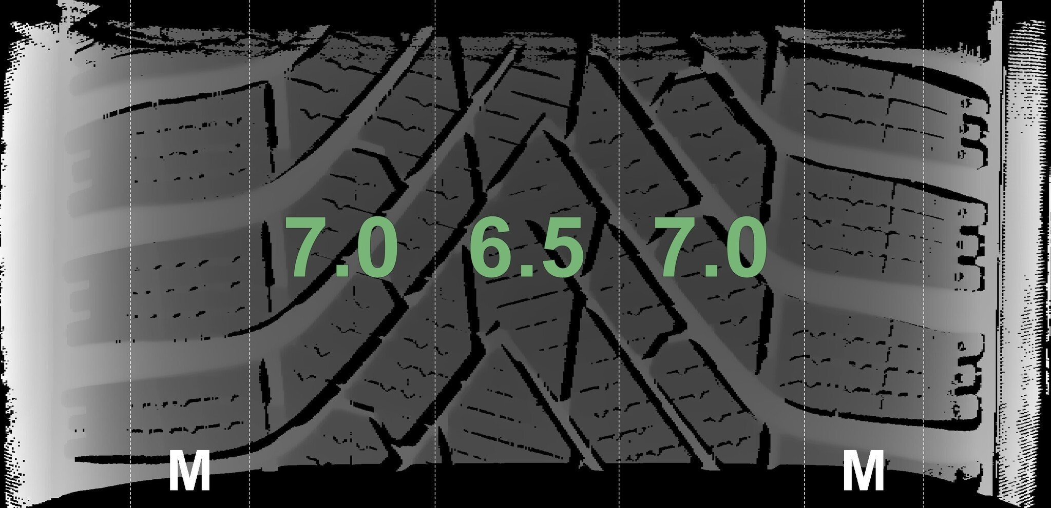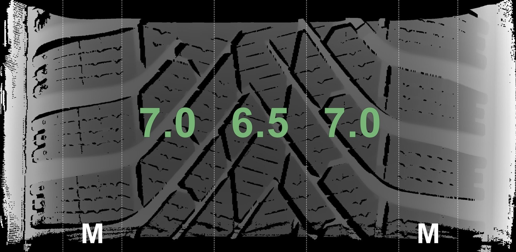 De gemeten profieldieptes en de details van de velgen zijn hierboven weergegeven.
