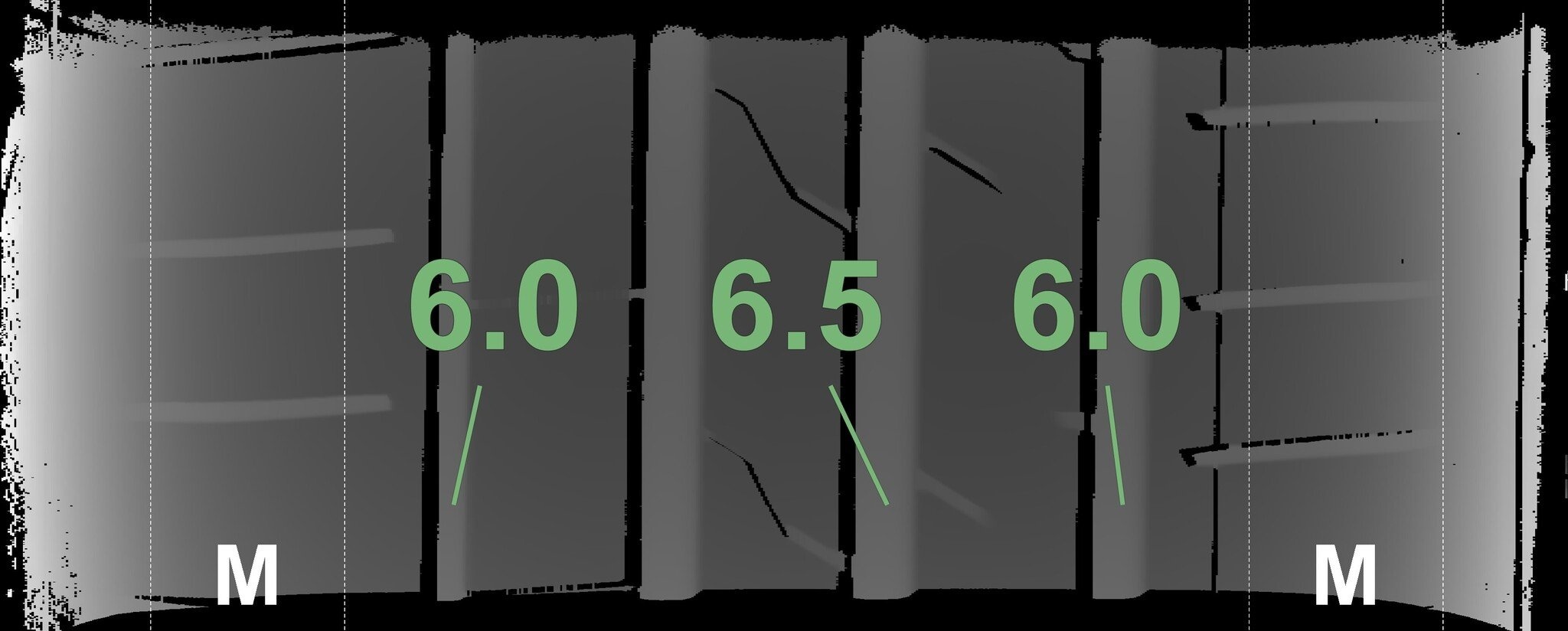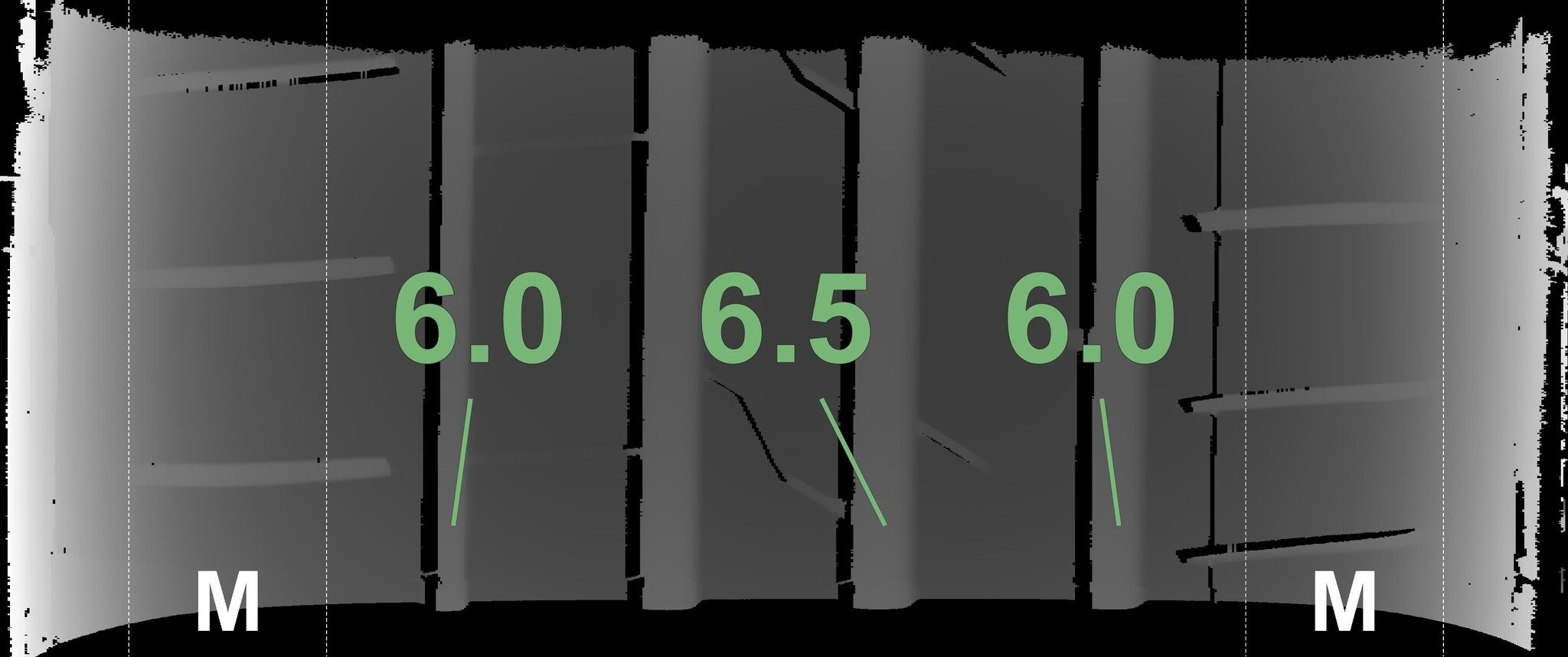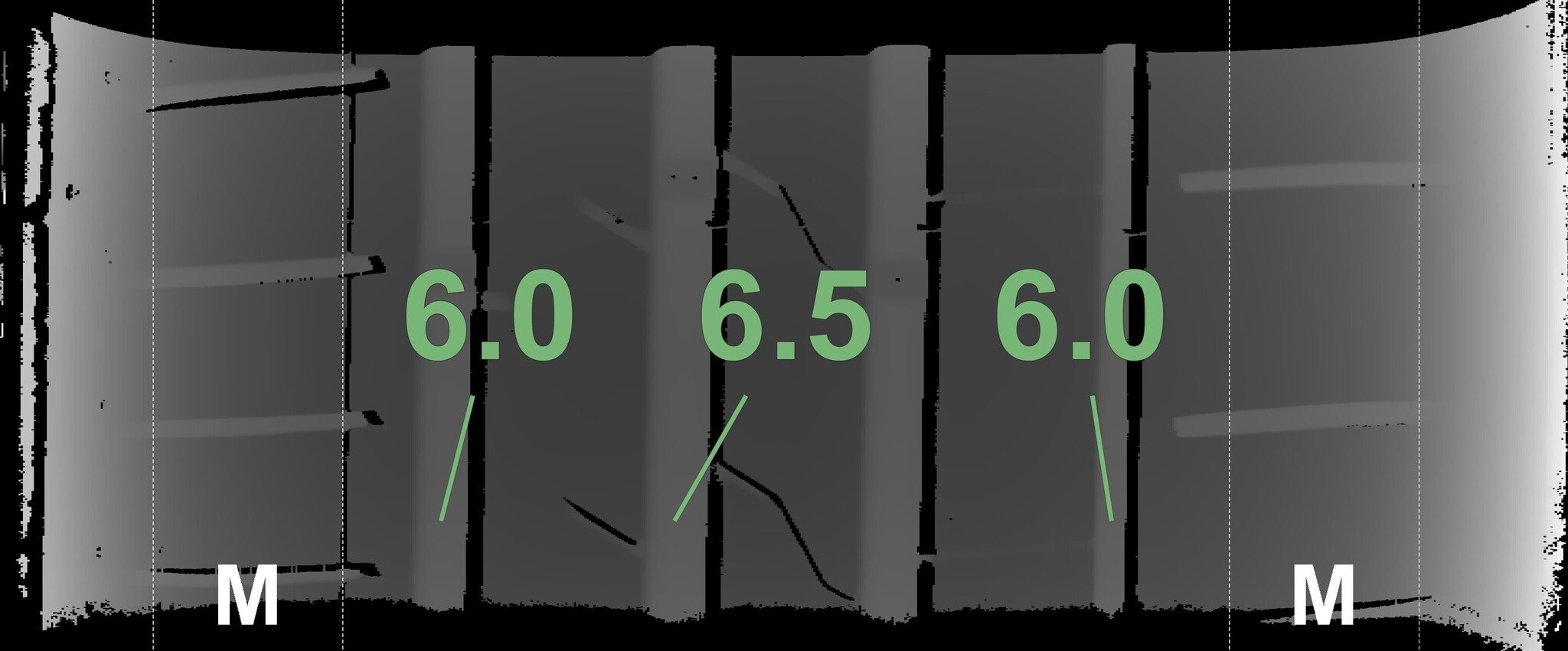 De gemeten profieldieptes en de details van de velgen zijn hierboven weergegeven.