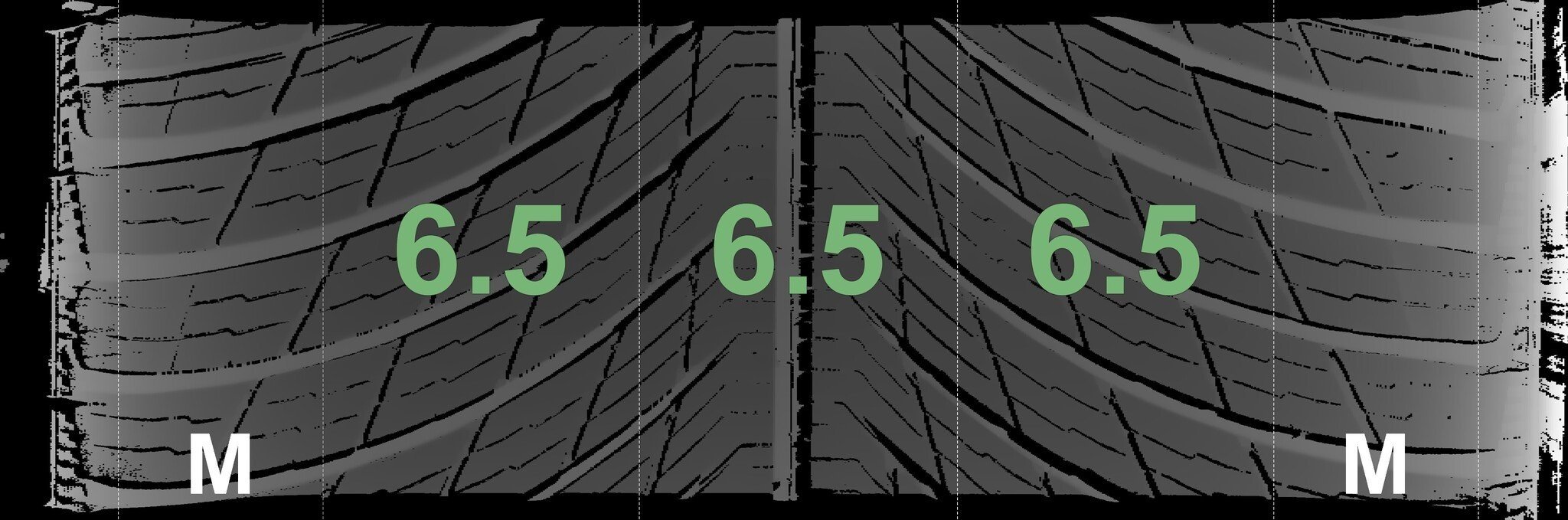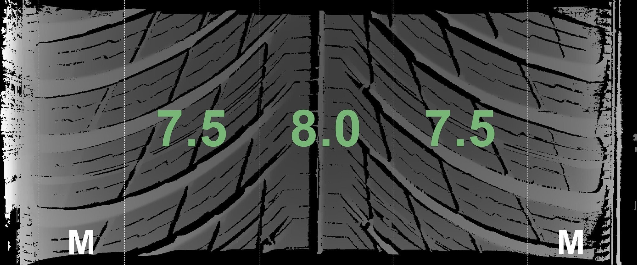 De gemeten profieldieptes en de details van de velgen zijn hierboven weergegeven.