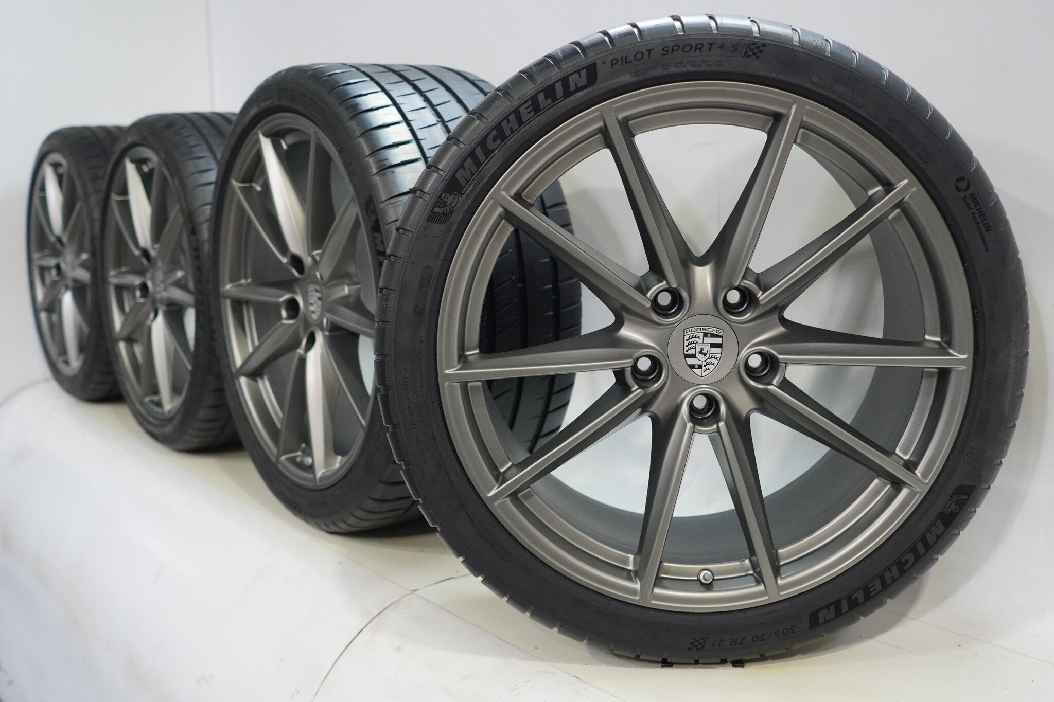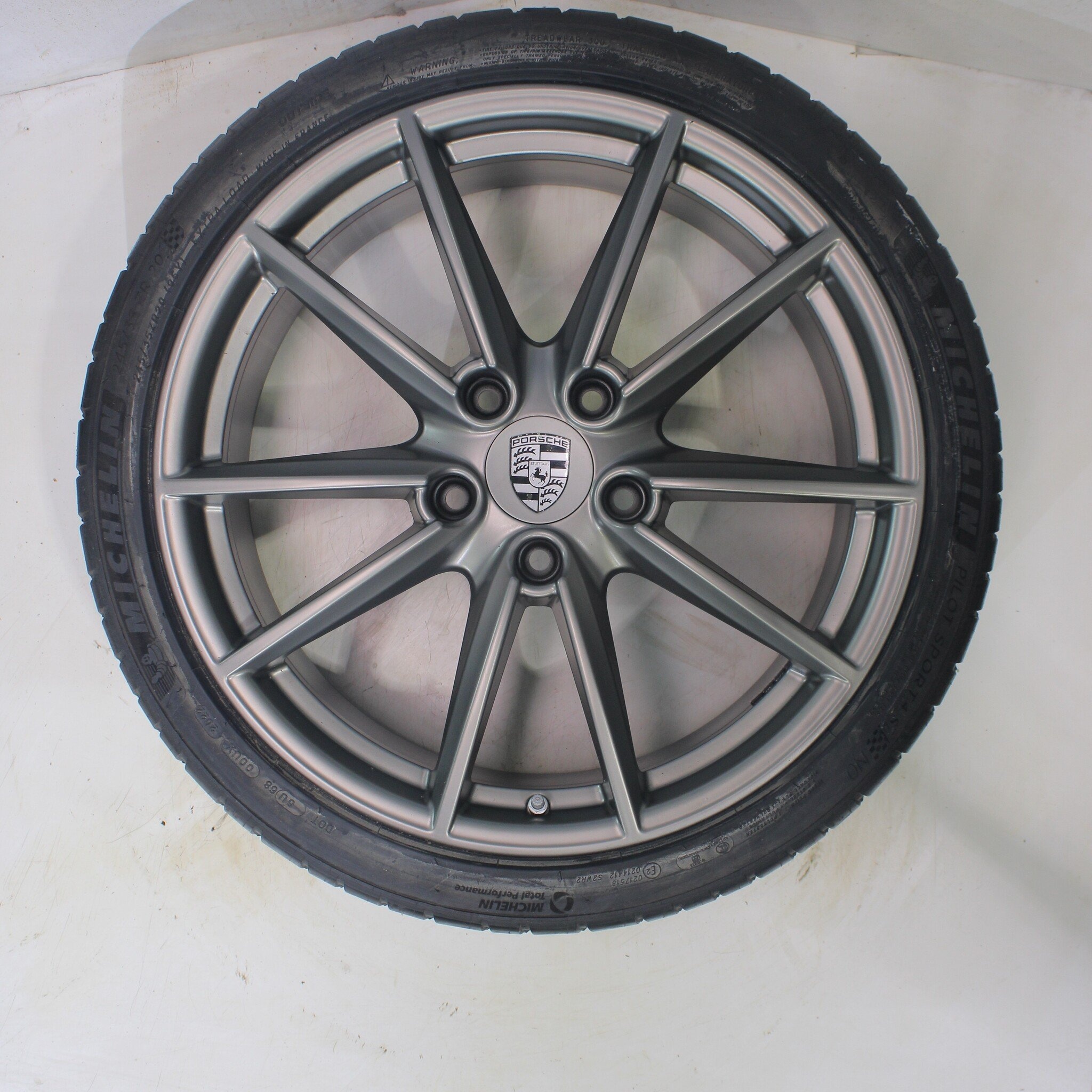 Originele wielset van Porsche, 20 inch velgen met Michelin Pilotsport4 Zomerbanden. Deze velgen zijn originele velgen van het merk Porsche en geschikt voor: Porsche 911 992 Carrera S 4S Targa 4S.
