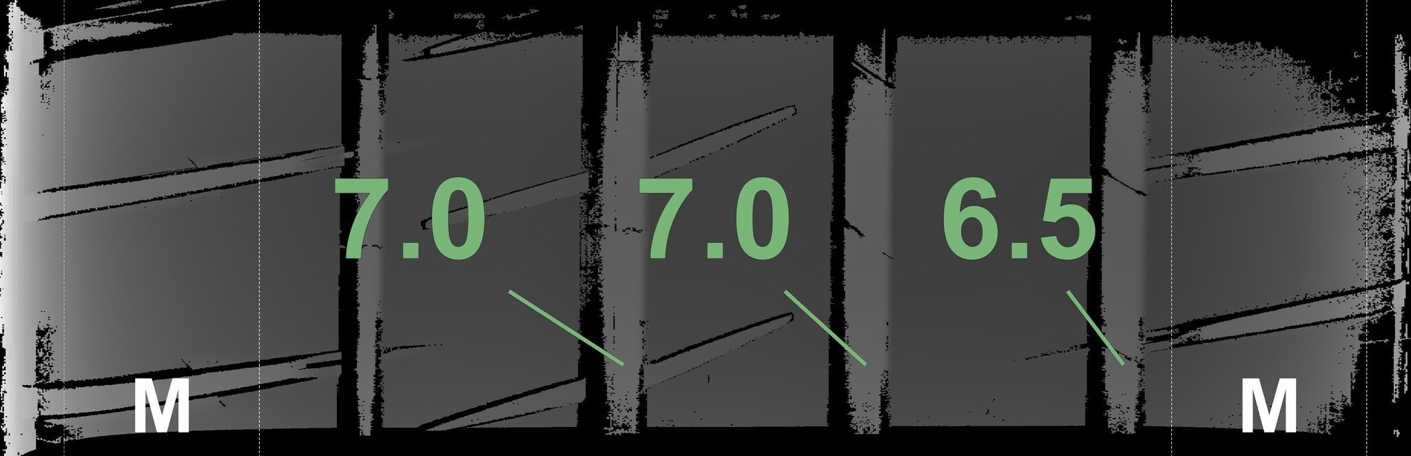 De gemeten profieldieptes en de details van de velgen zijn hierboven weergegeven.