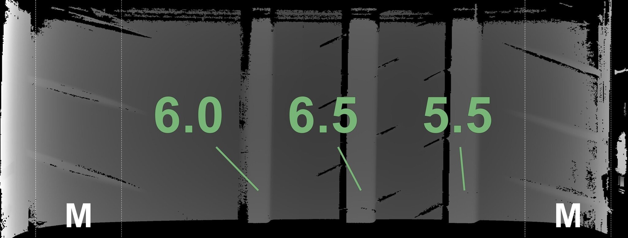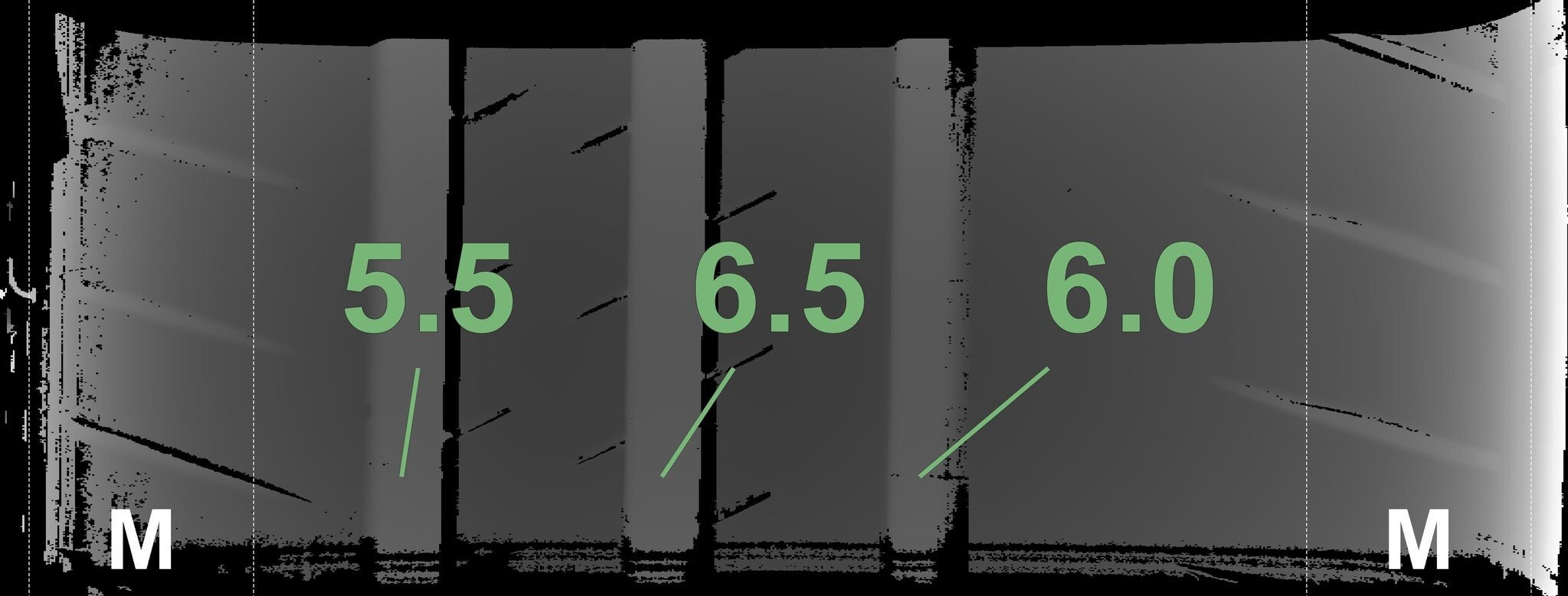 De gemeten profieldieptes en de details van de velgen zijn hierboven weergegeven.