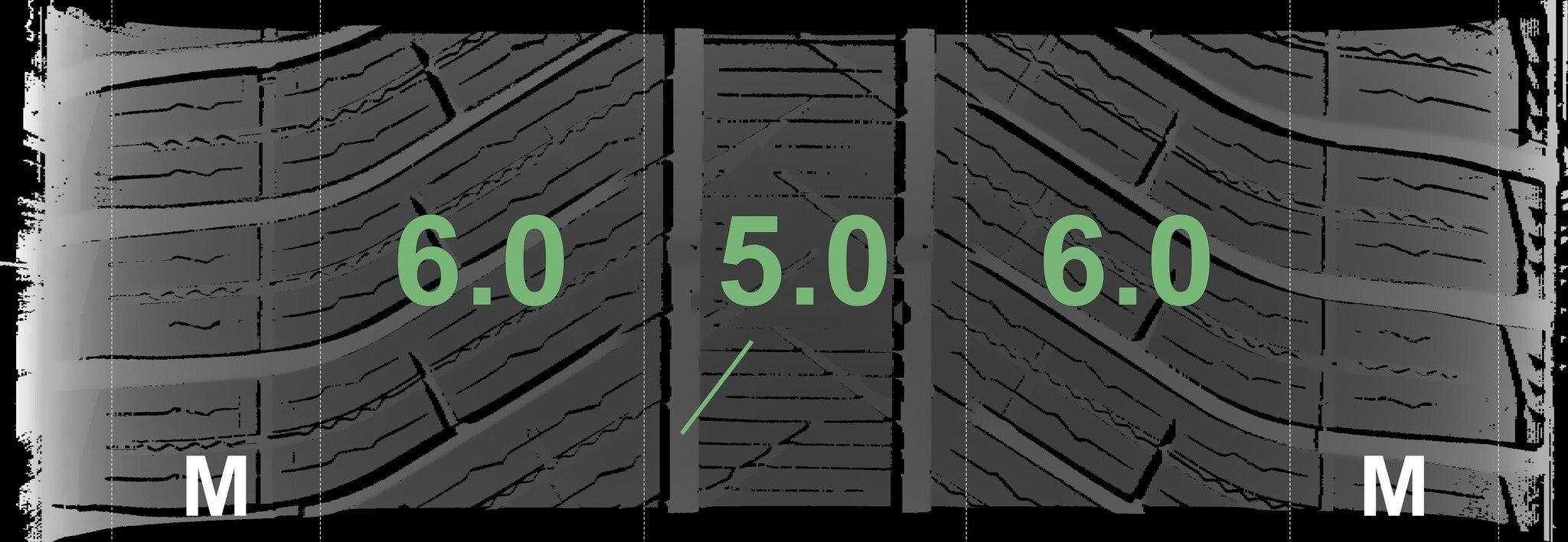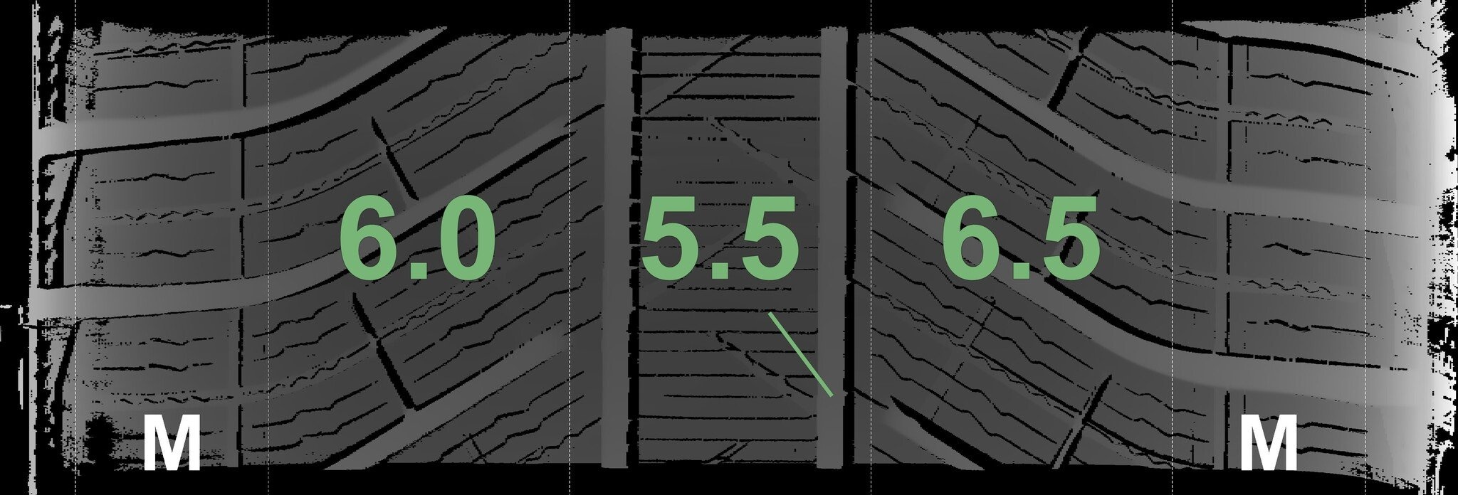 De gemeten profieldieptes en de details van de velgen zijn hierboven weergegeven.