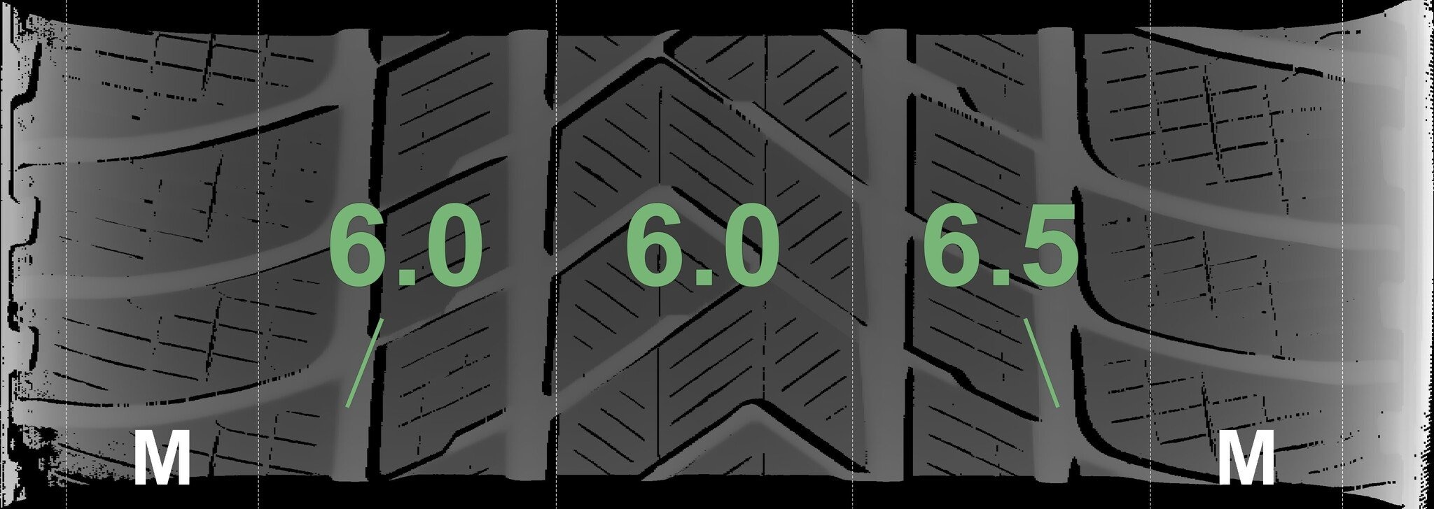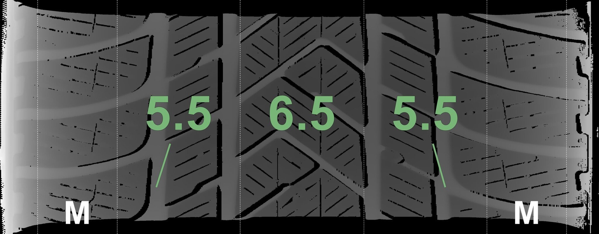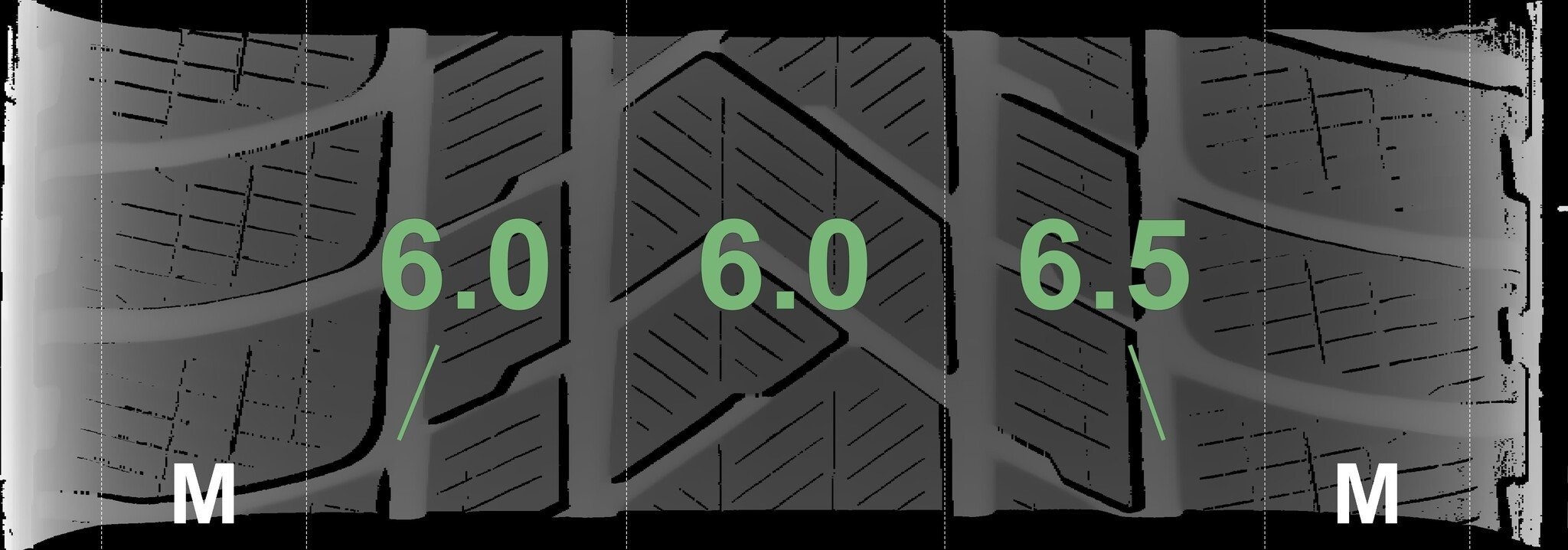 De gemeten profieldieptes en de details van de velgen zijn hierboven weergegeven.