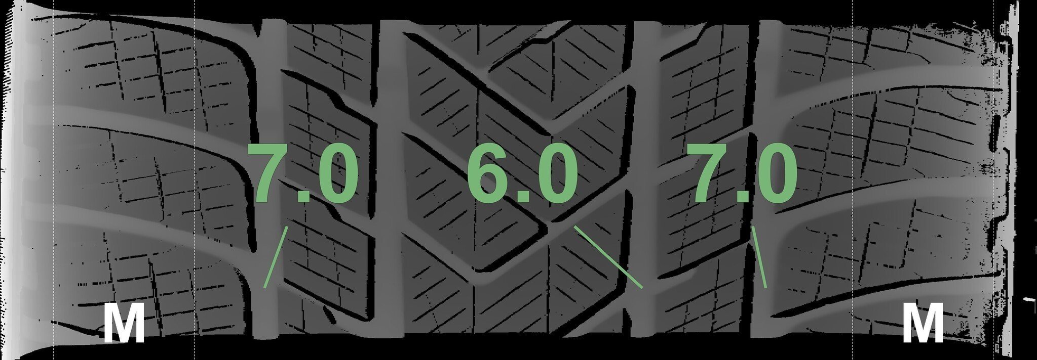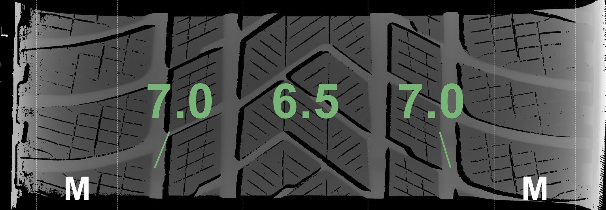 De gemeten profieldieptes en de details van de velgen zijn hierboven weergegeven.