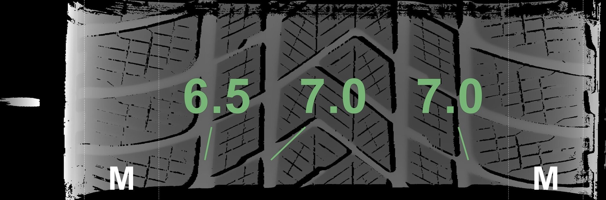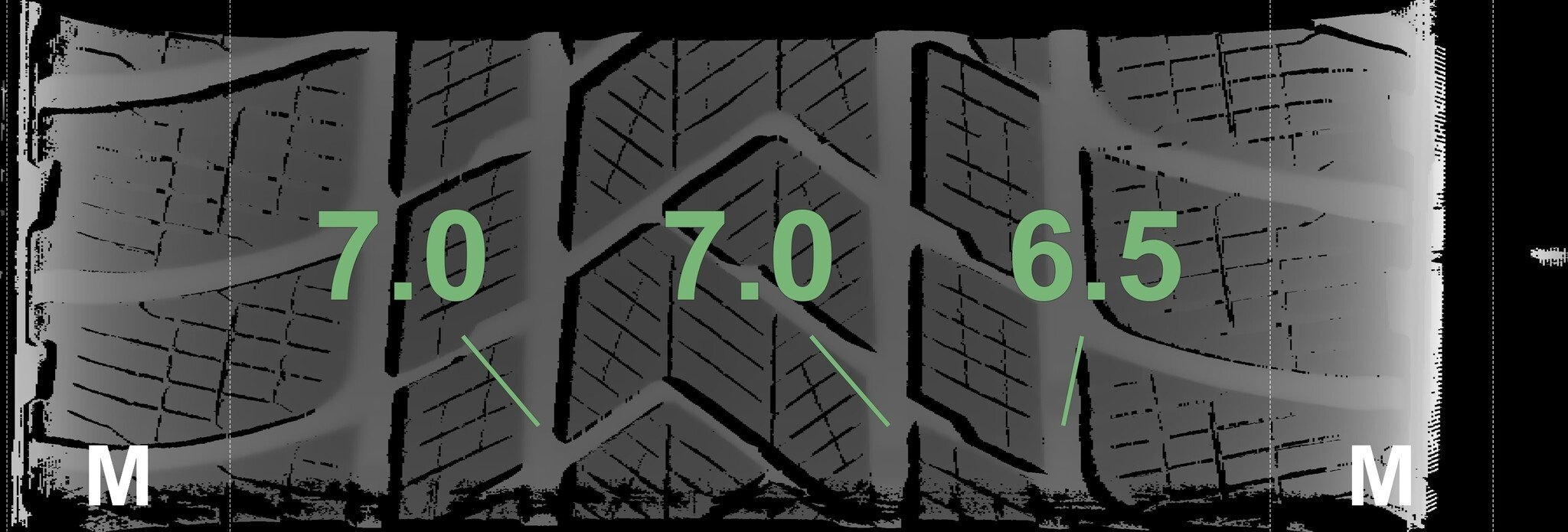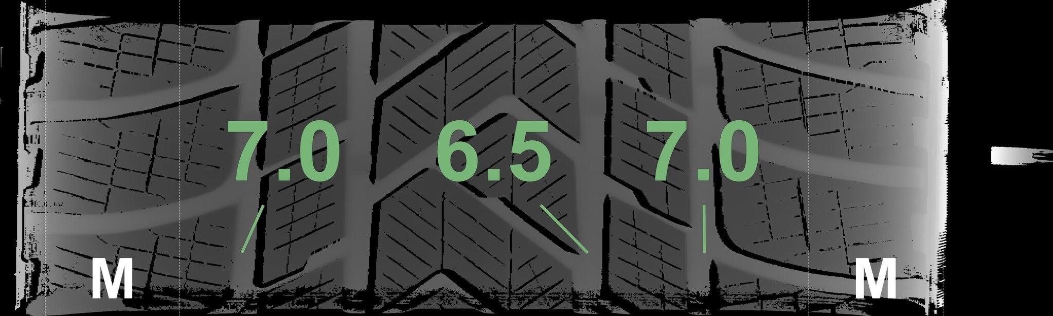 De gemeten profieldieptes en de details van de velgen zijn hierboven weergegeven.