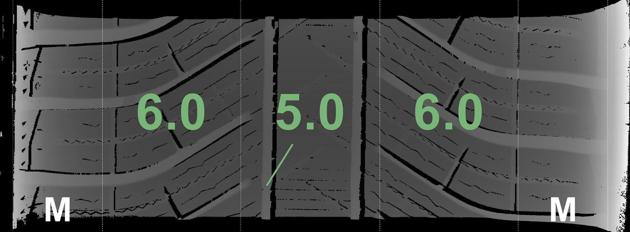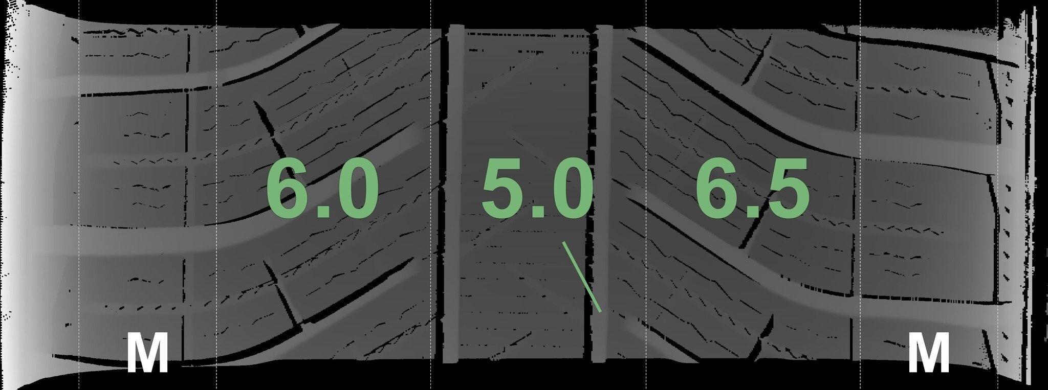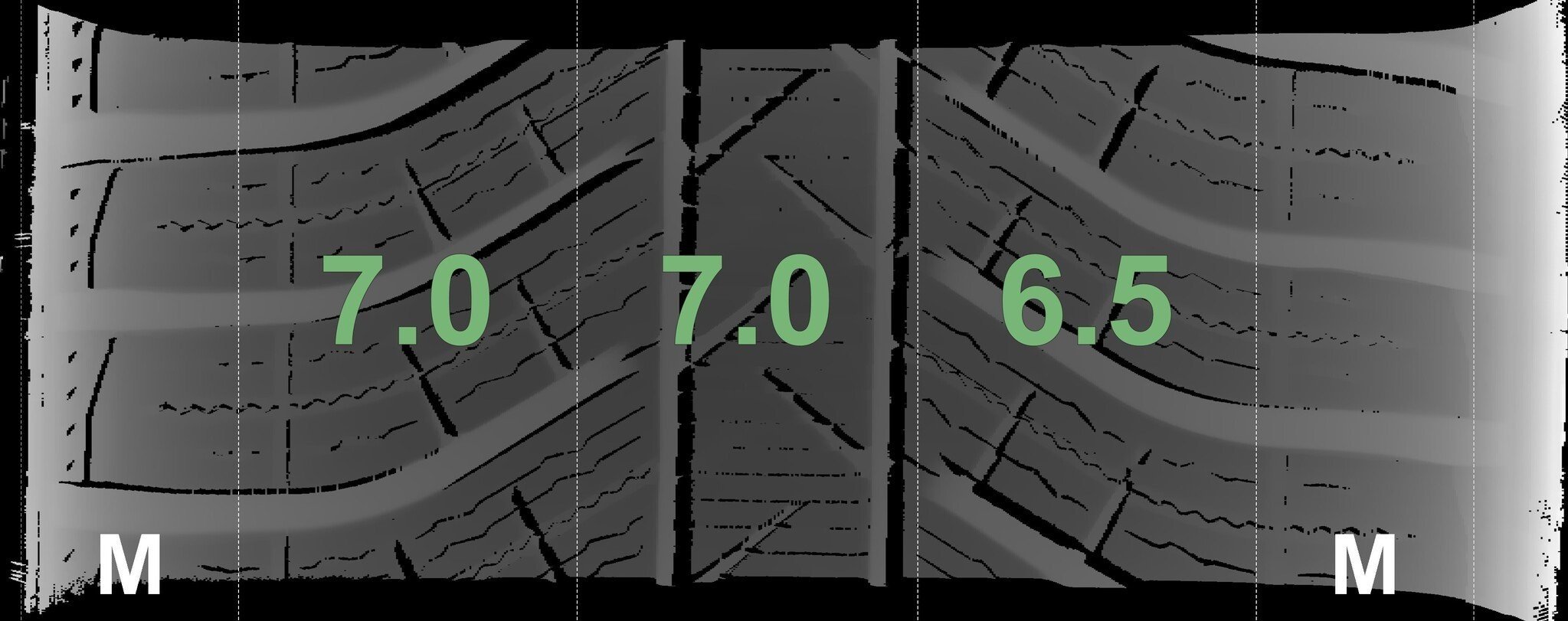 De gemeten profieldieptes en de details van de velgen zijn hierboven weergegeven.