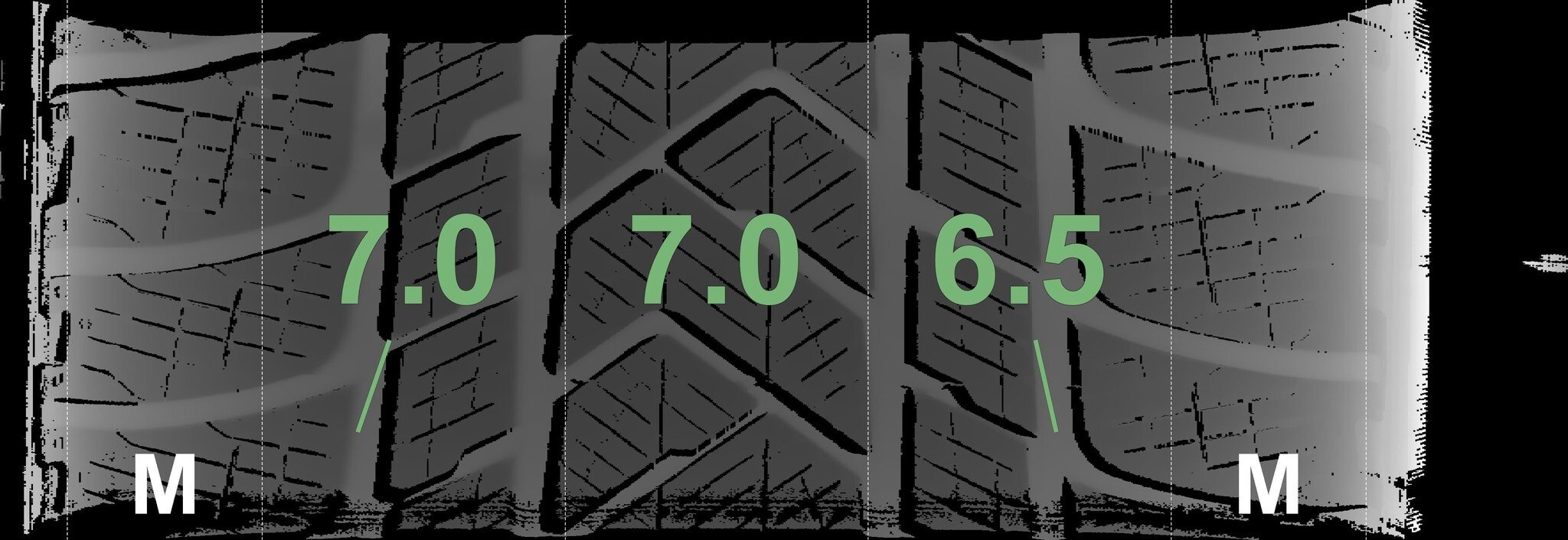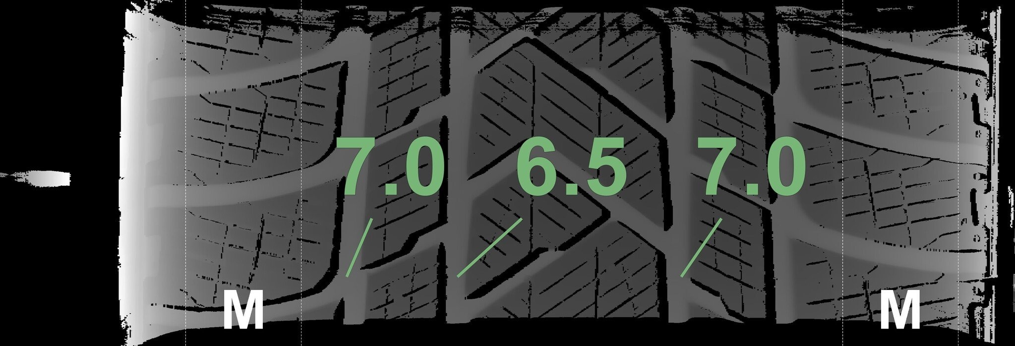 De gemeten profieldieptes en de details van de velgen zijn hierboven weergegeven.