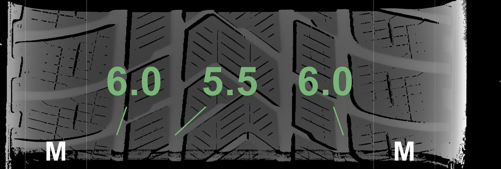 De gemeten profieldieptes en de details van de velgen zijn hierboven weergegeven.