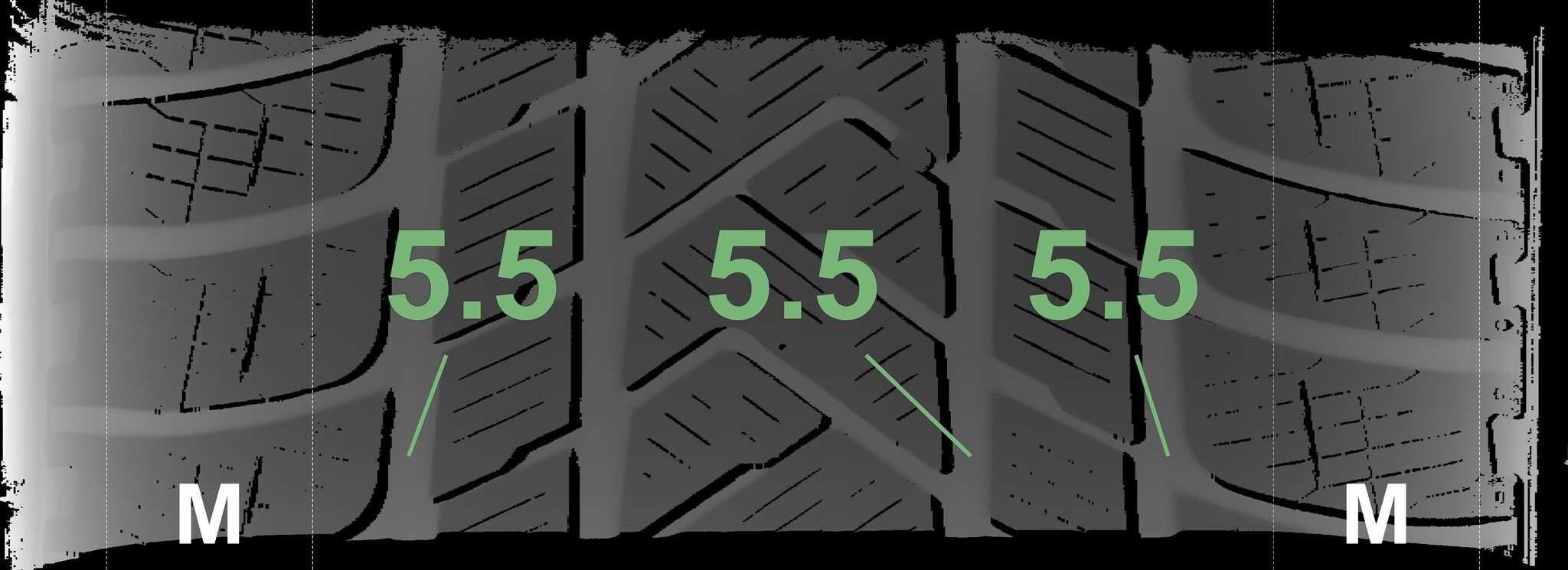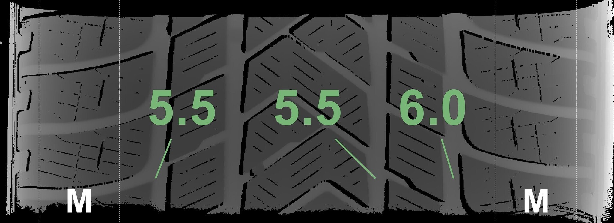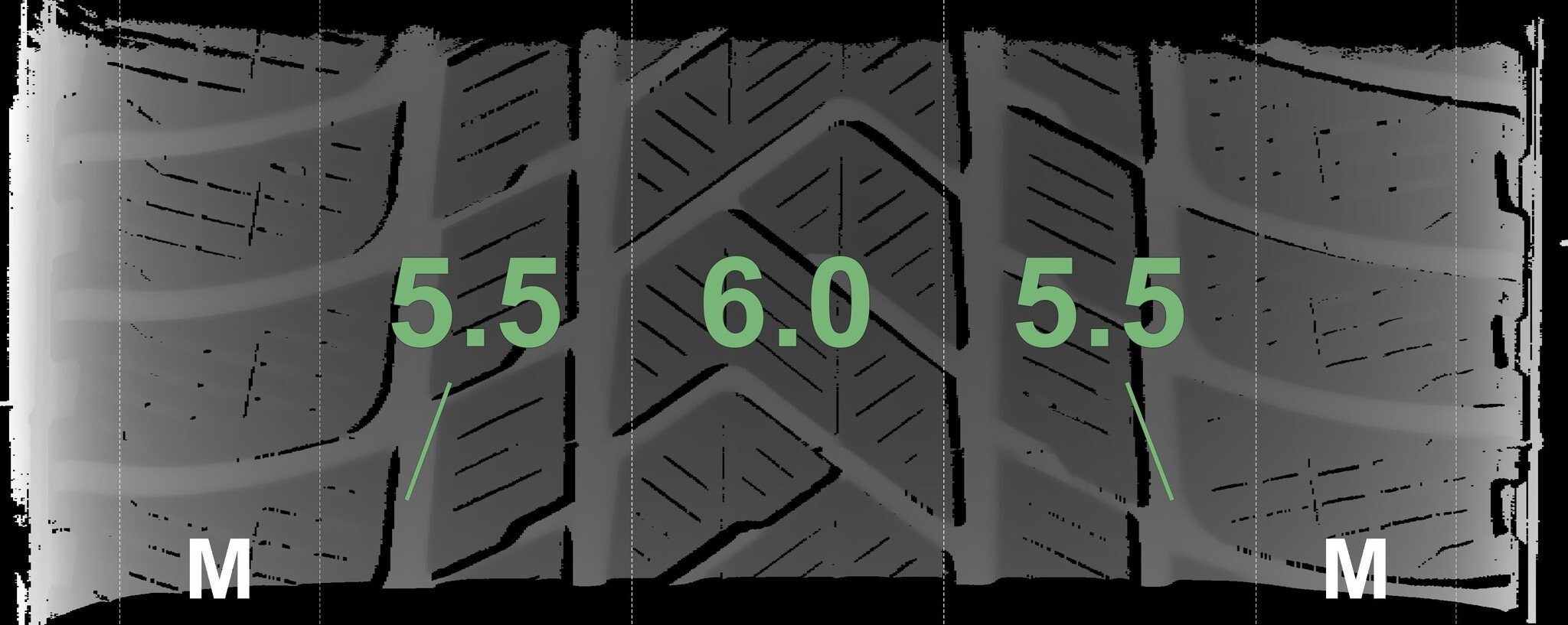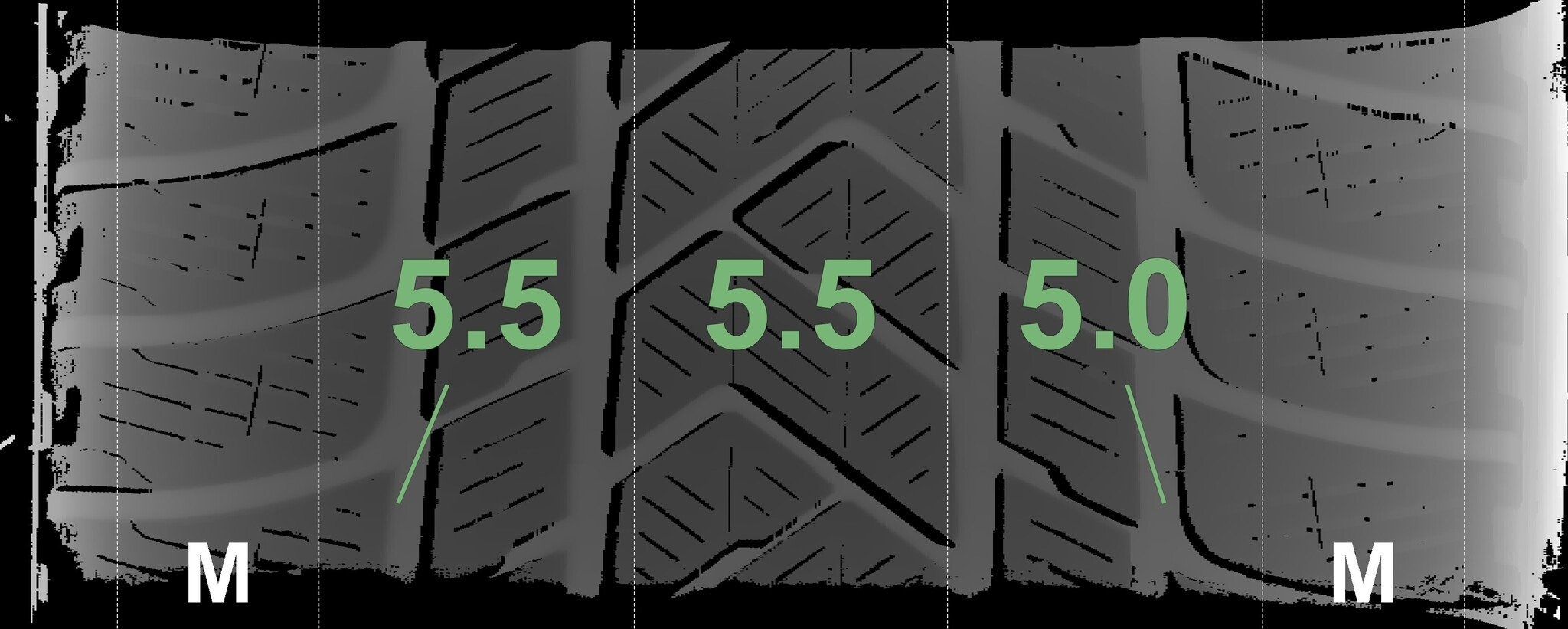 De gemeten profieldieptes en de details van de velgen zijn hierboven weergegeven.