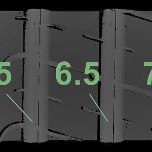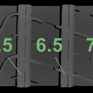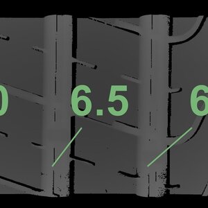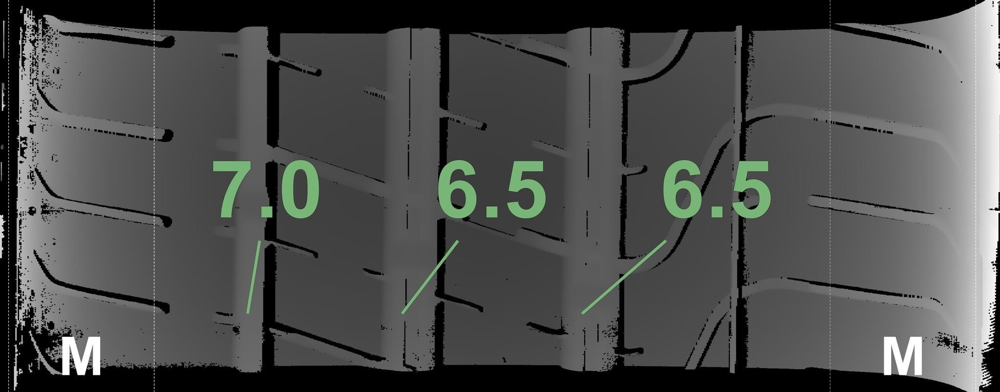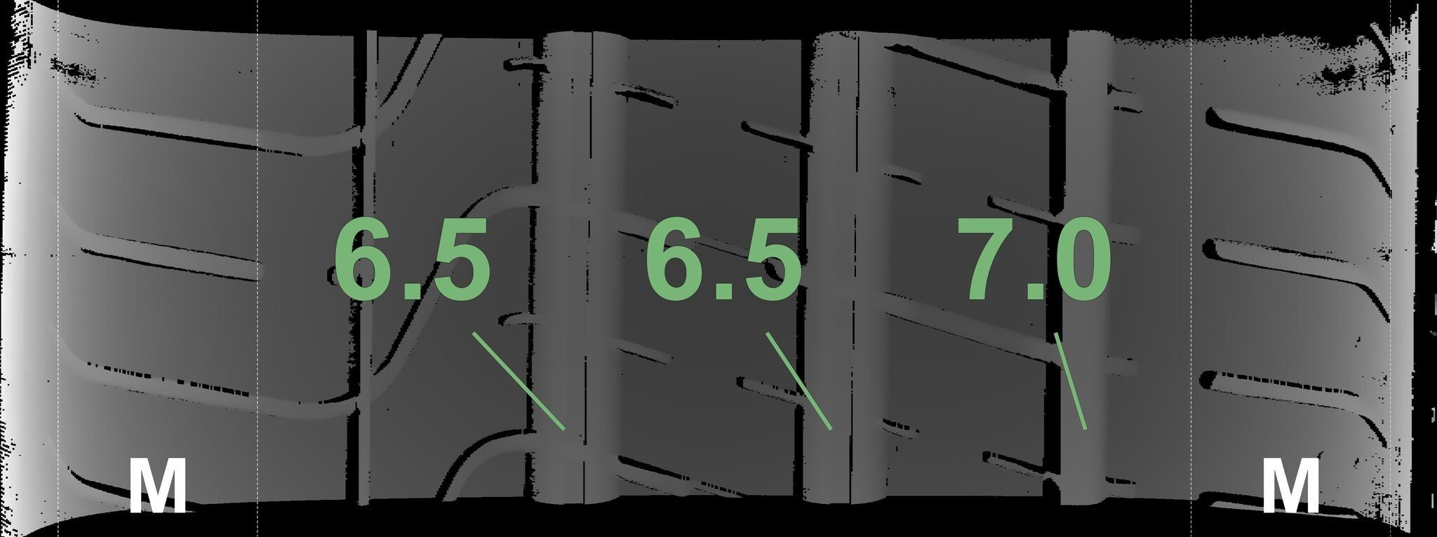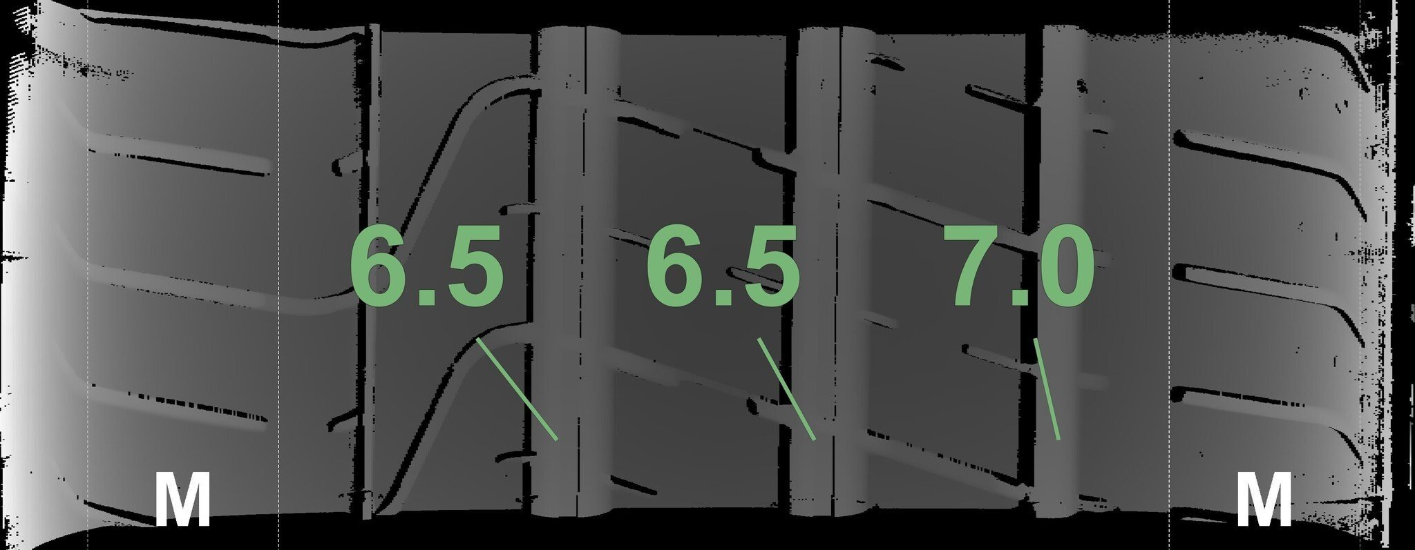 De gemeten profieldieptes en de details van de velgen zijn hierboven weergegeven.