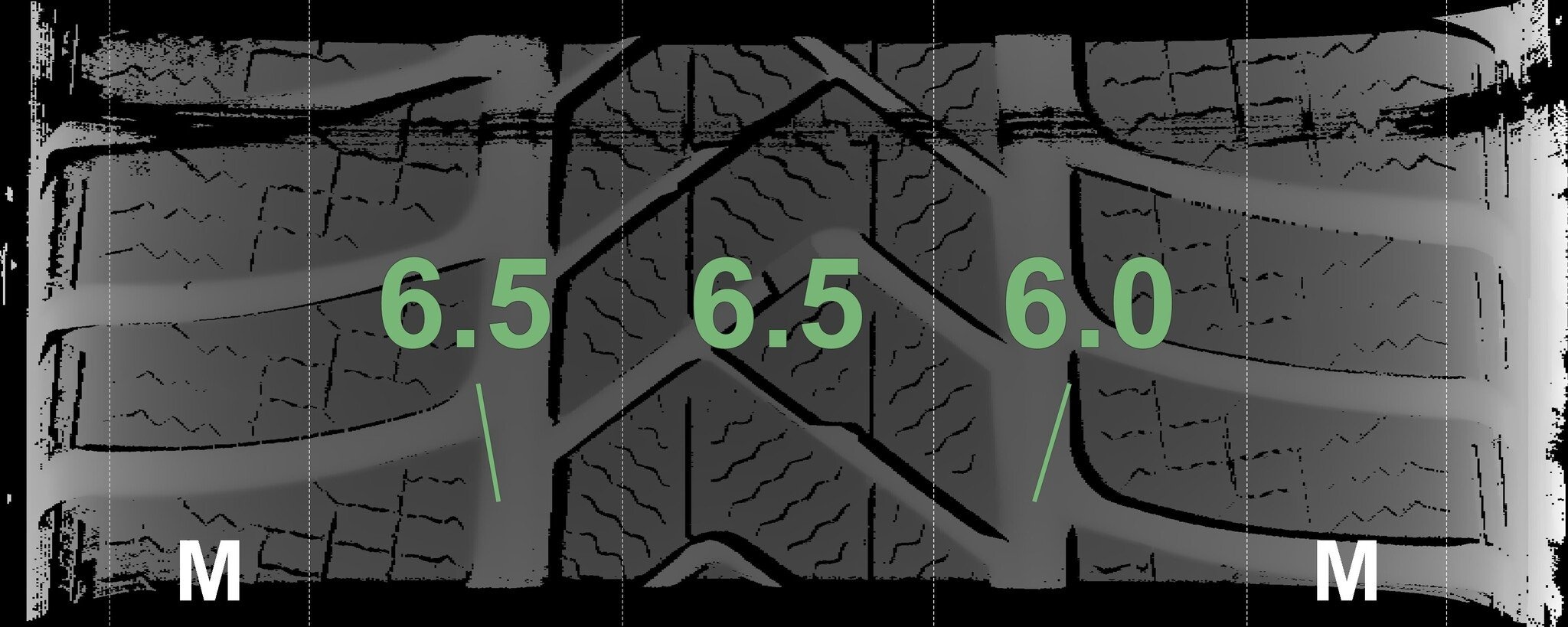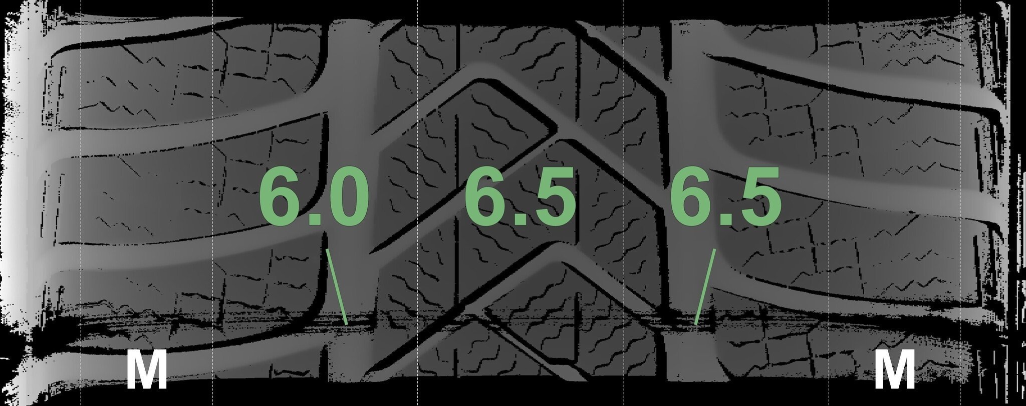 De gemeten profieldieptes en de details van de velgen zijn hierboven weergegeven.