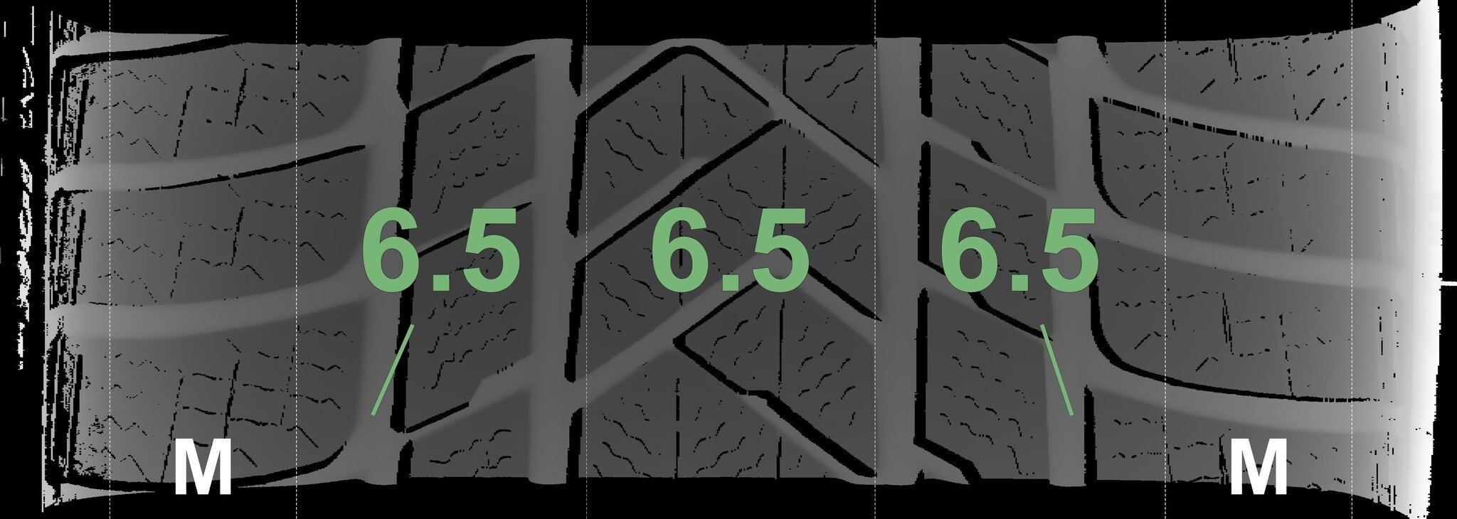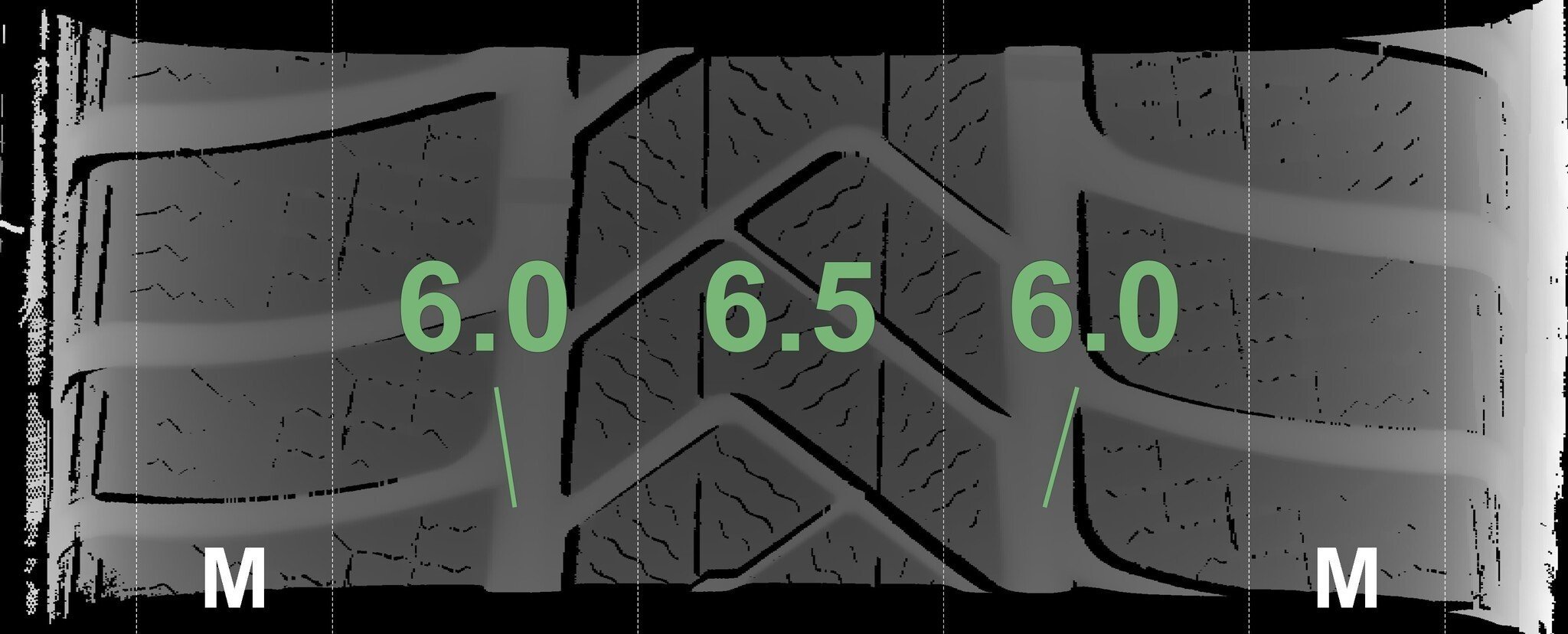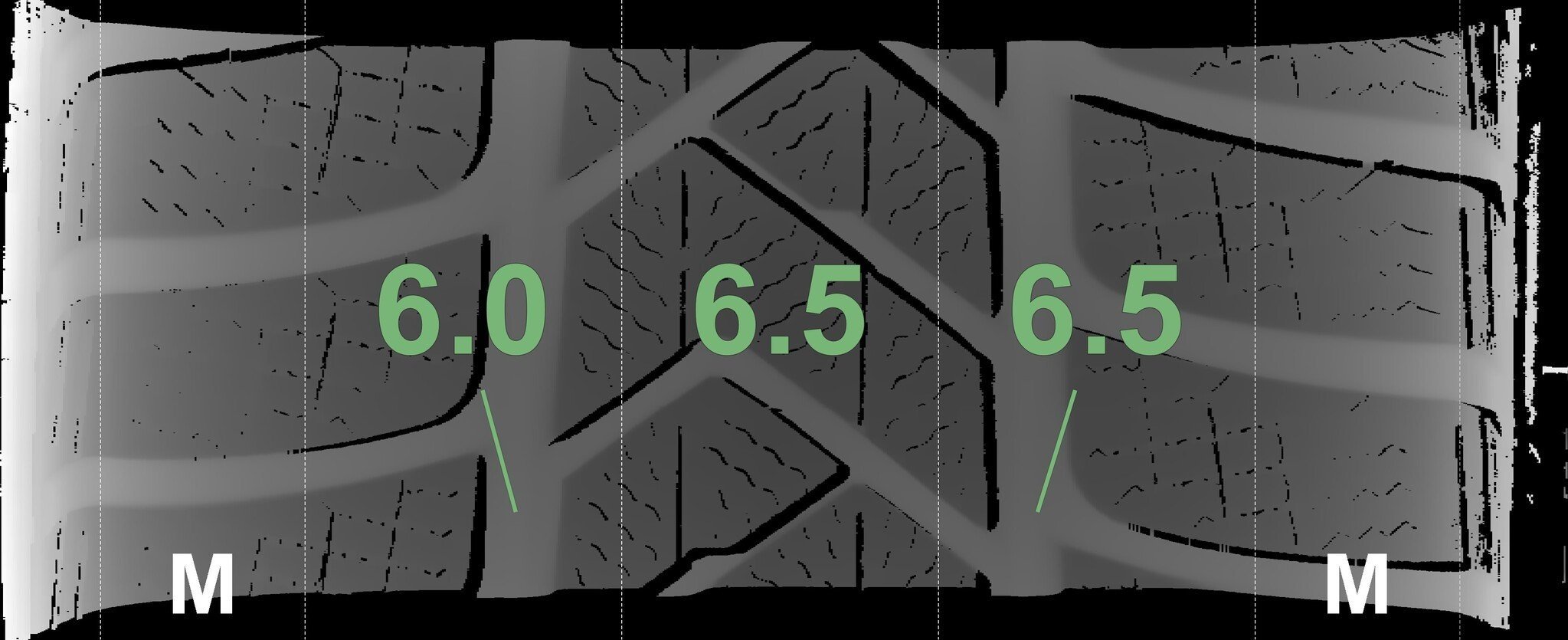 De gemeten profieldieptes en de details van de velgen zijn hierboven weergegeven.
