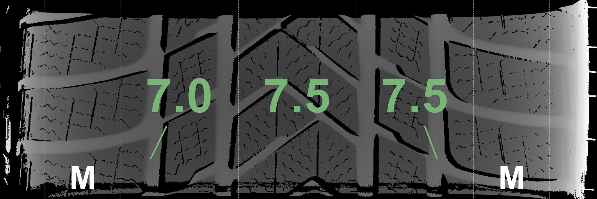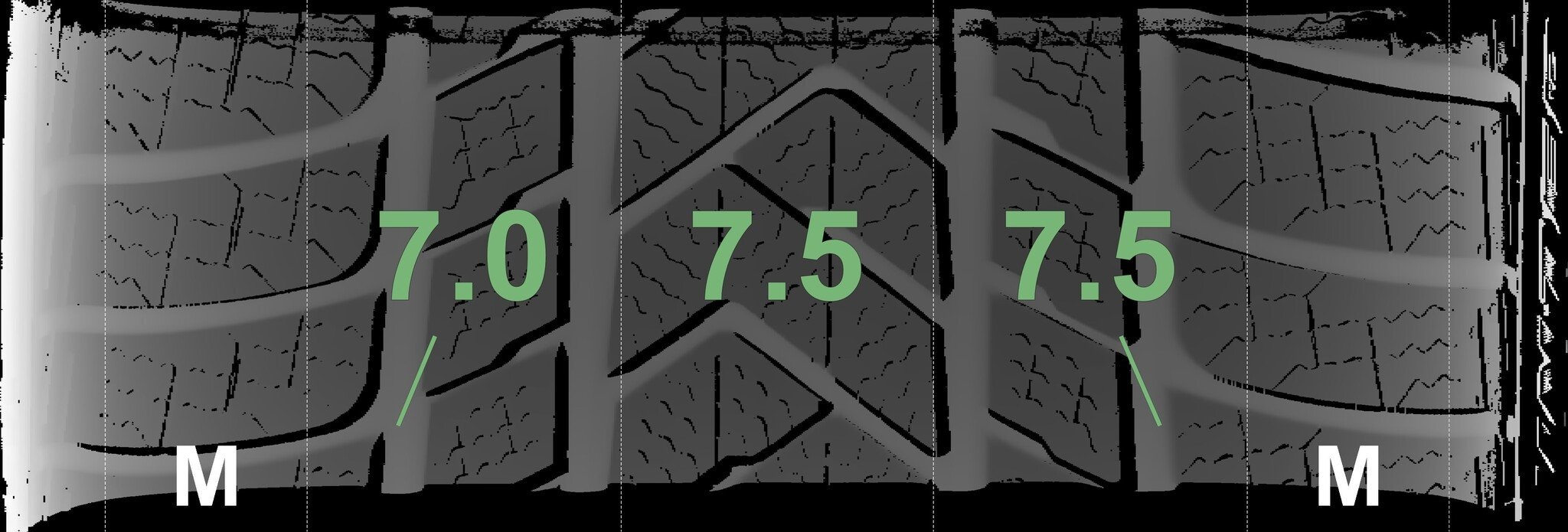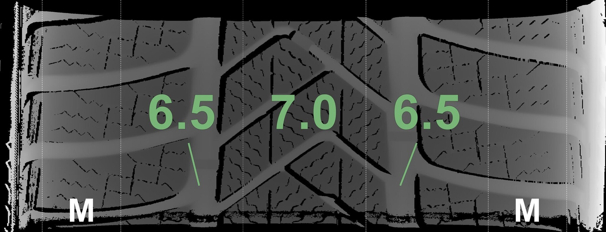 De gemeten profieldieptes en de details van de velgen zijn hierboven weergegeven.