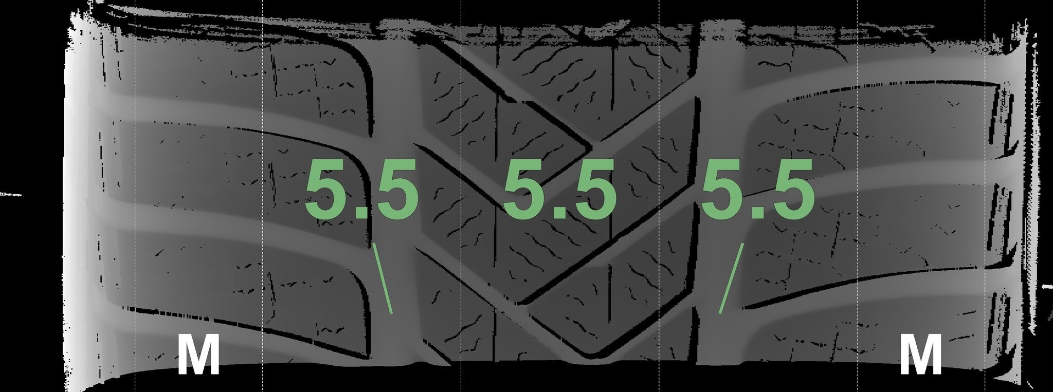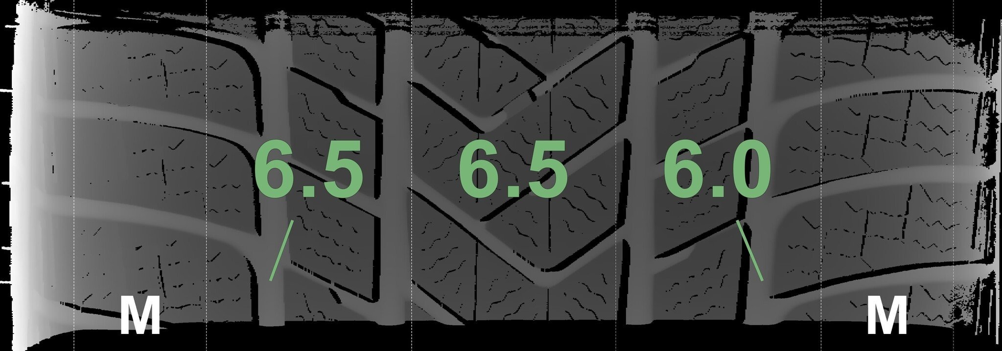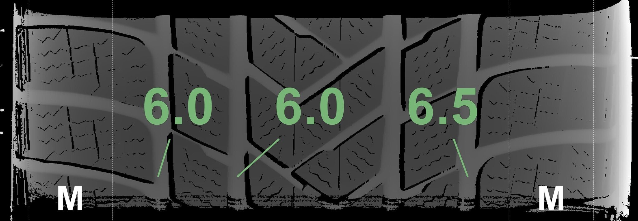 De gemeten profieldieptes en de details van de velgen zijn hierboven weergegeven.