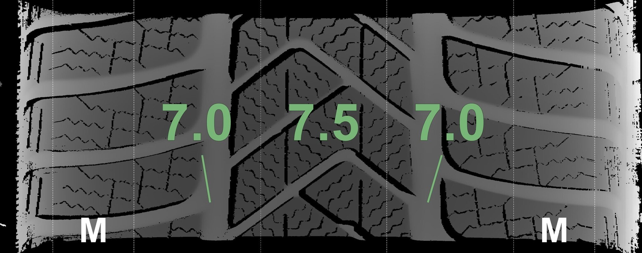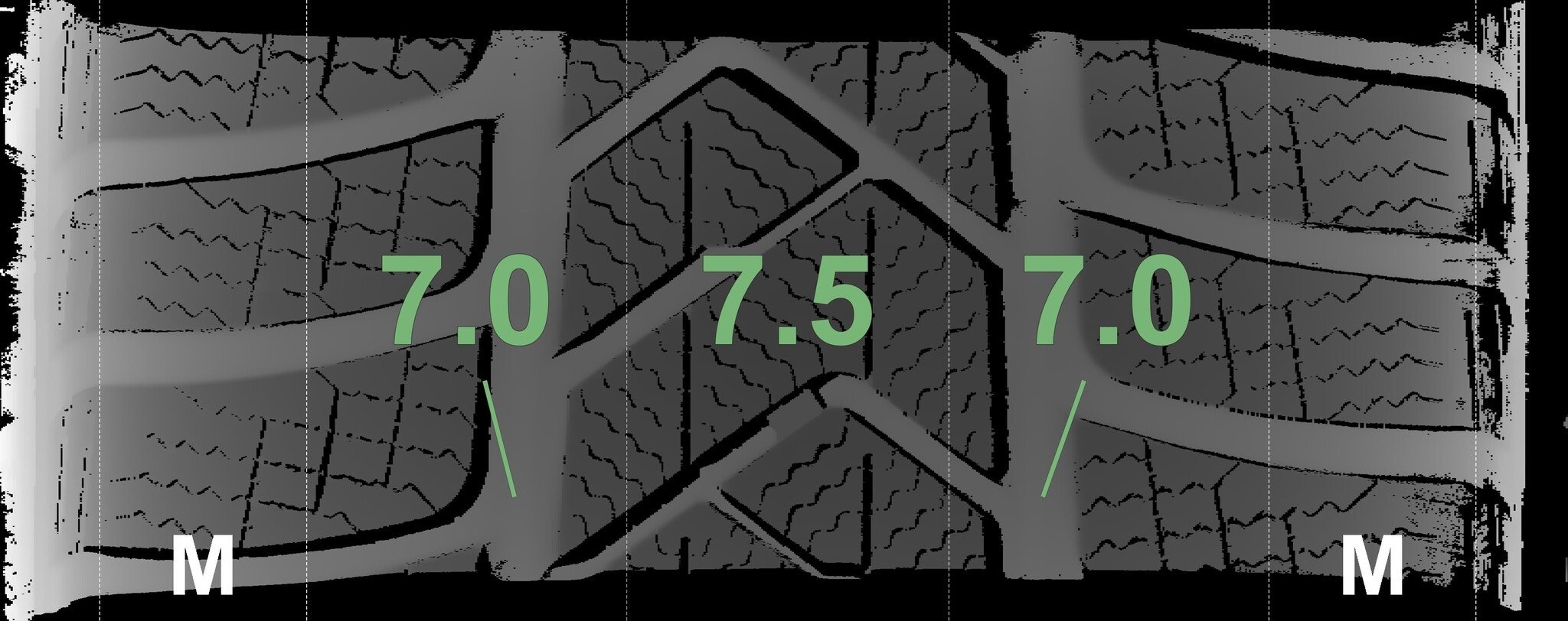 De gemeten profieldieptes en de details van de velgen zijn hierboven weergegeven.