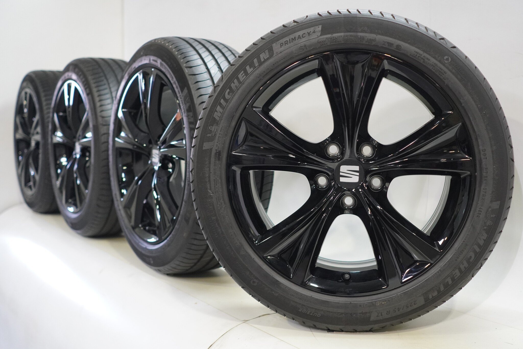Originele wielset van Seat, 17 inch velgen met Michelin Primacy4 Zomerbanden. Deze velgen zijn originele velgen van het merk Seat en geschikt voor: Seat Leon .