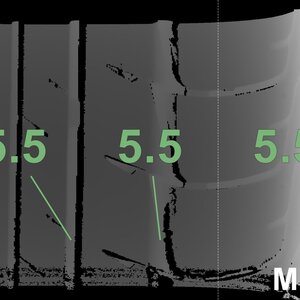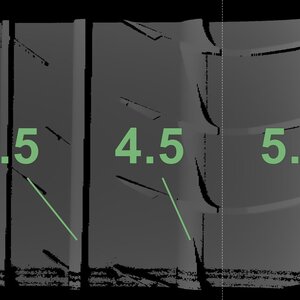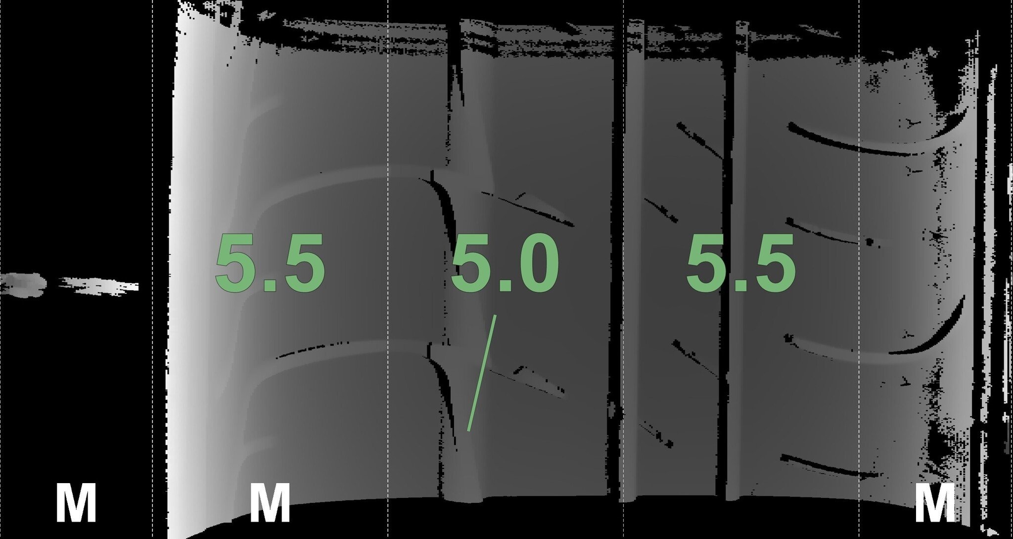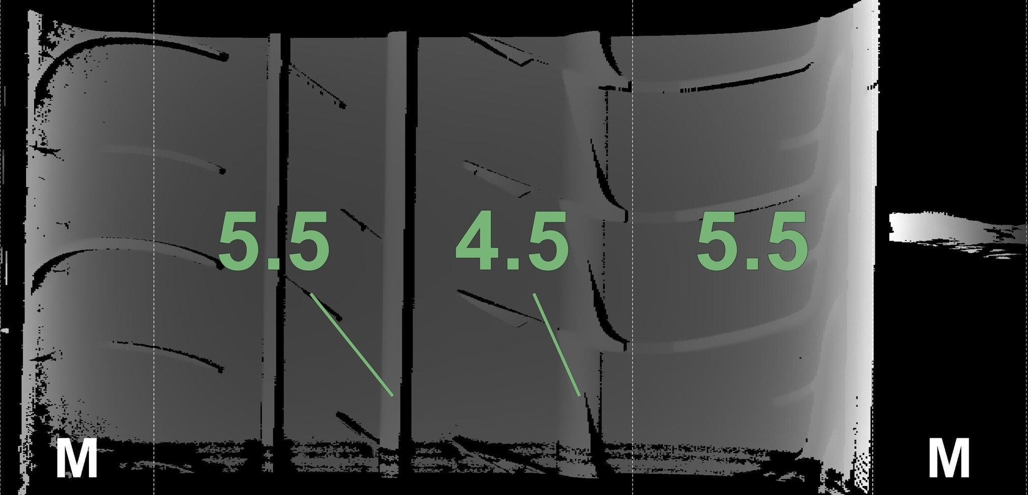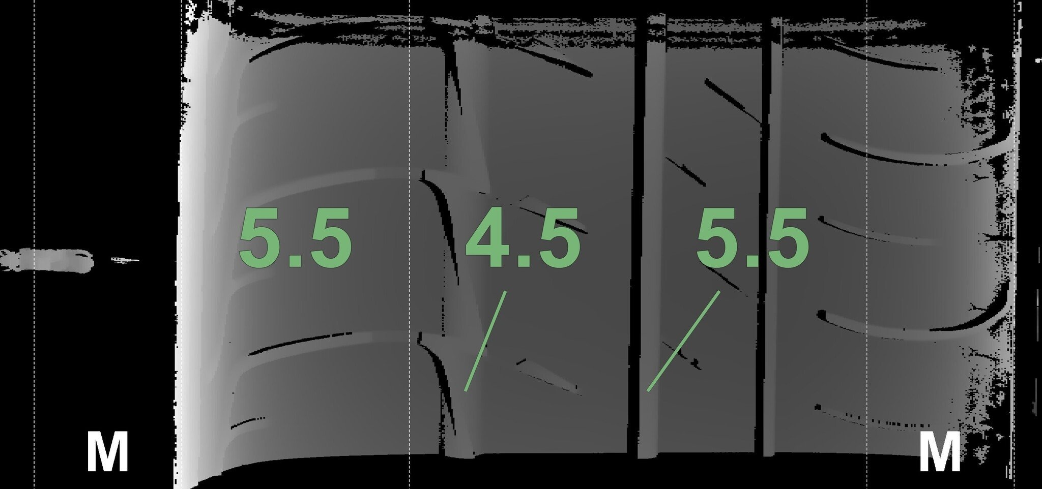 De gemeten profieldieptes en de details van de velgen zijn hierboven weergegeven.