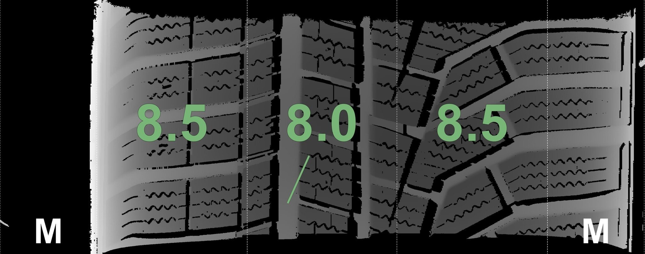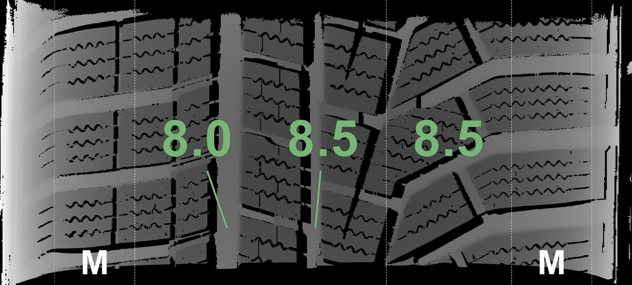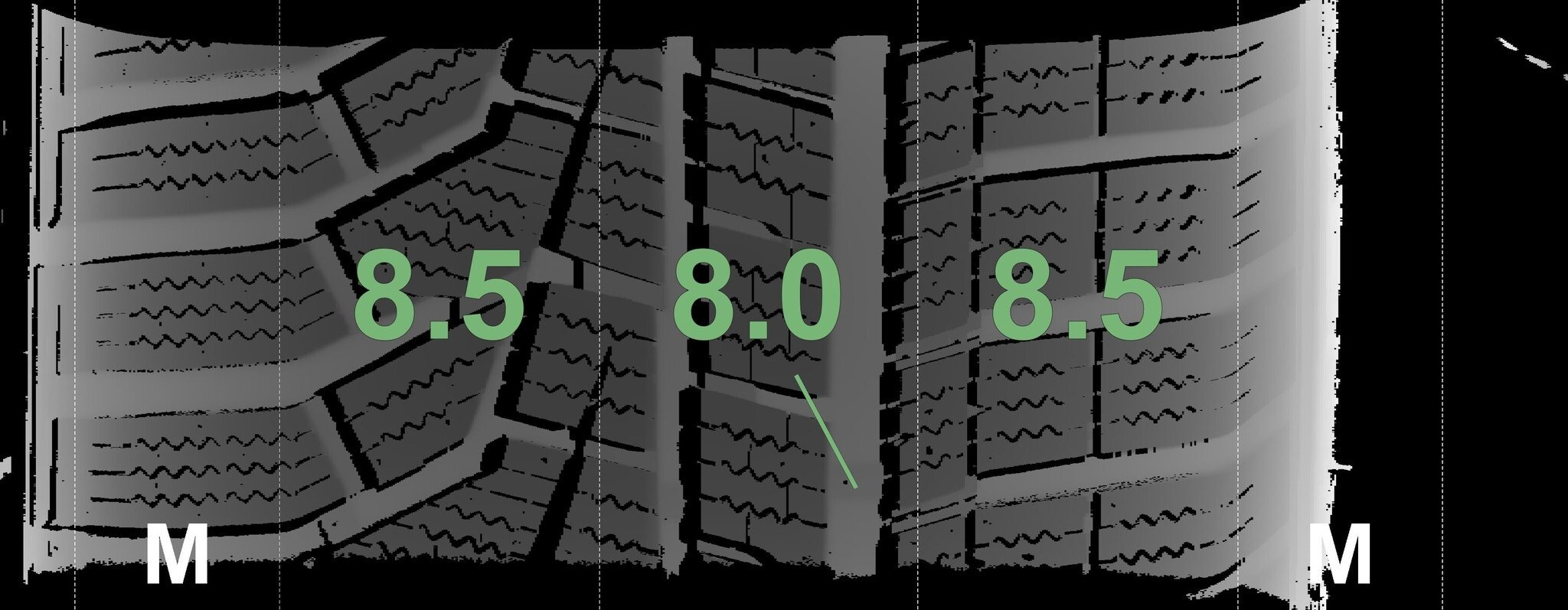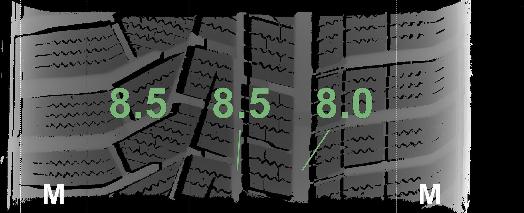 De gemeten profieldieptes en de details van de velgen zijn hierboven weergegeven.