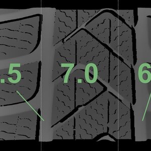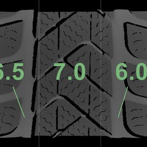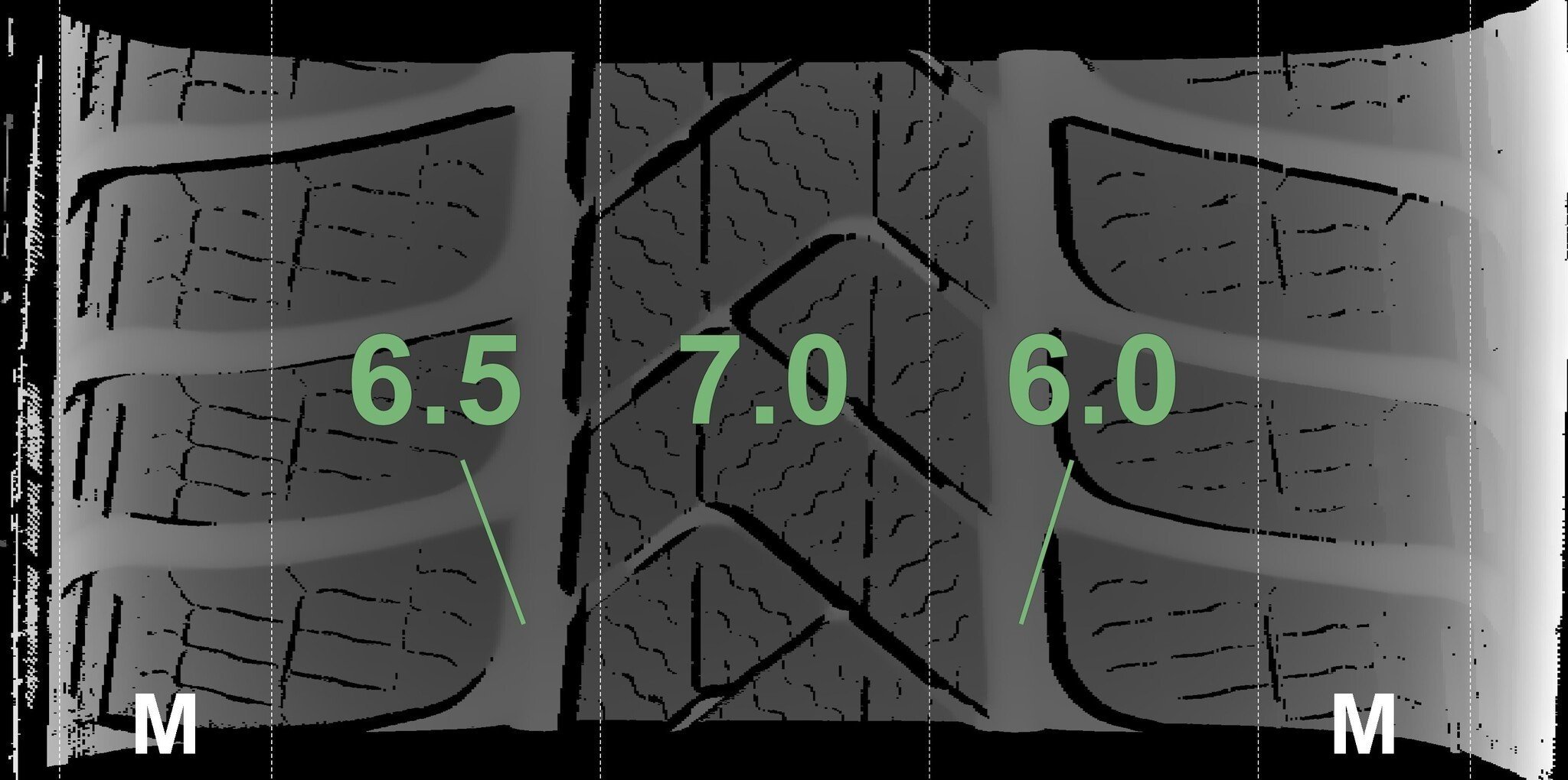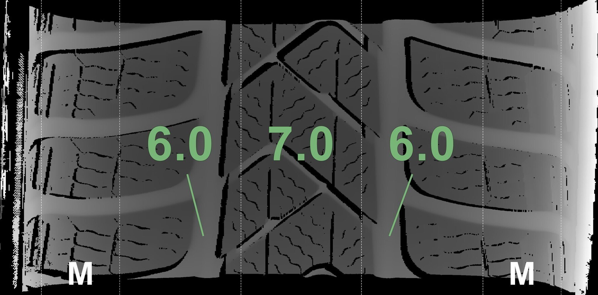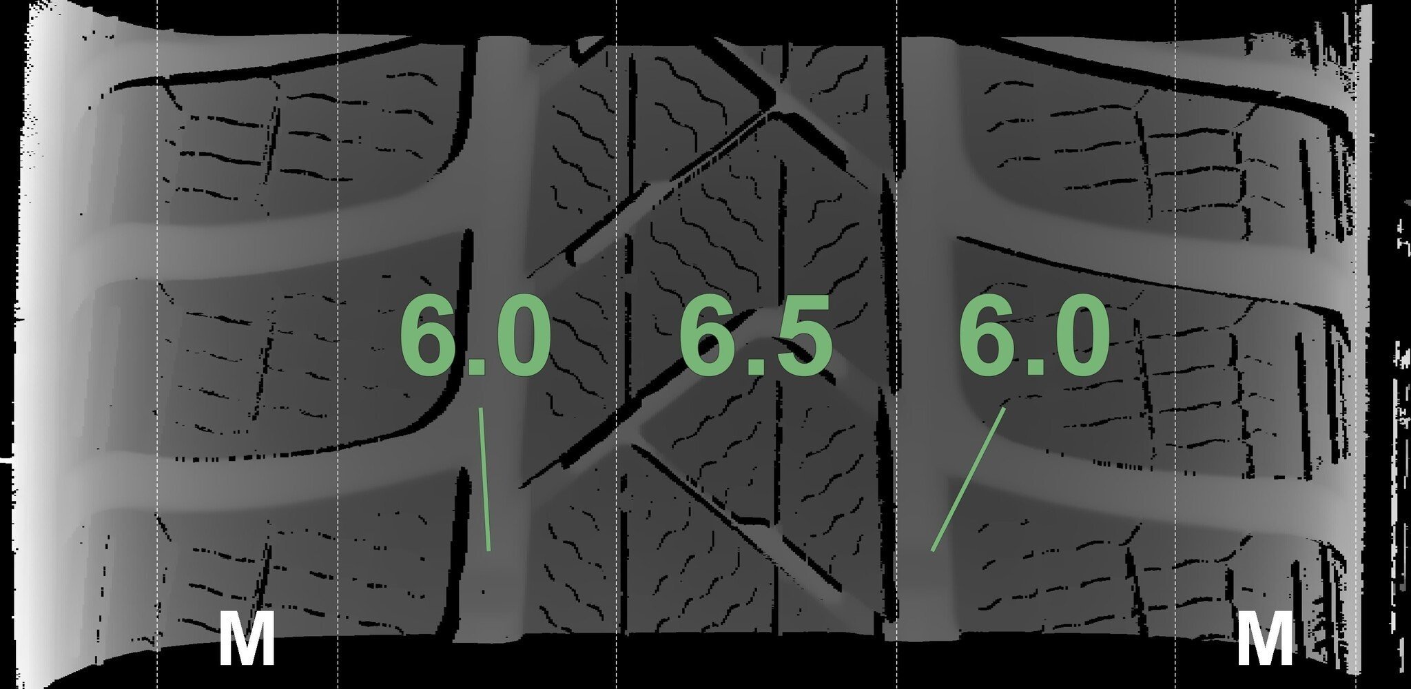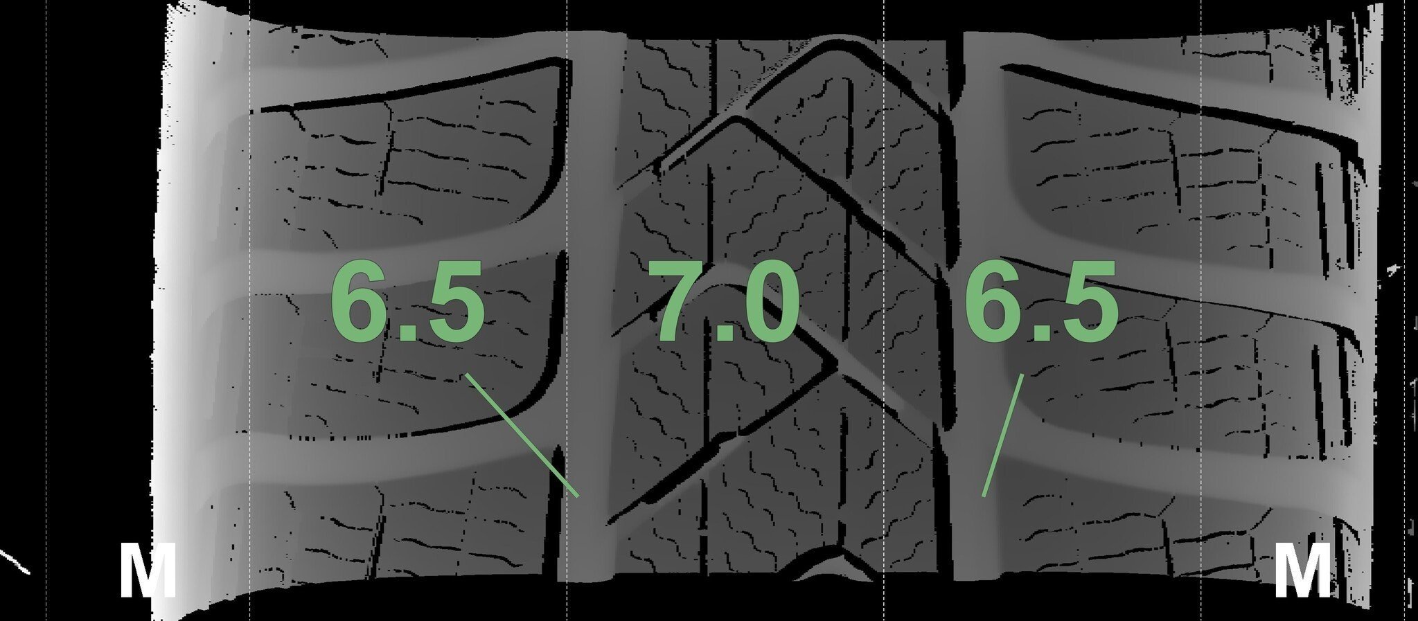 De gemeten profieldieptes en de details van de velgen zijn hierboven weergegeven.