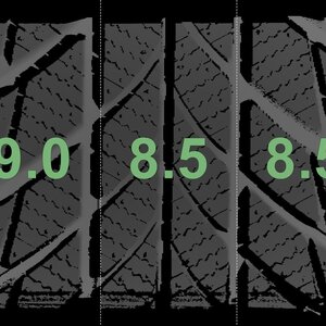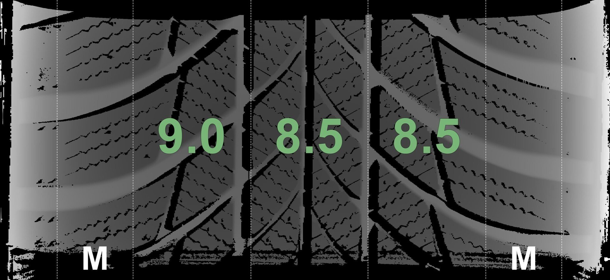 De gemeten profieldieptes en de details van de velgen zijn hierboven weergegeven.