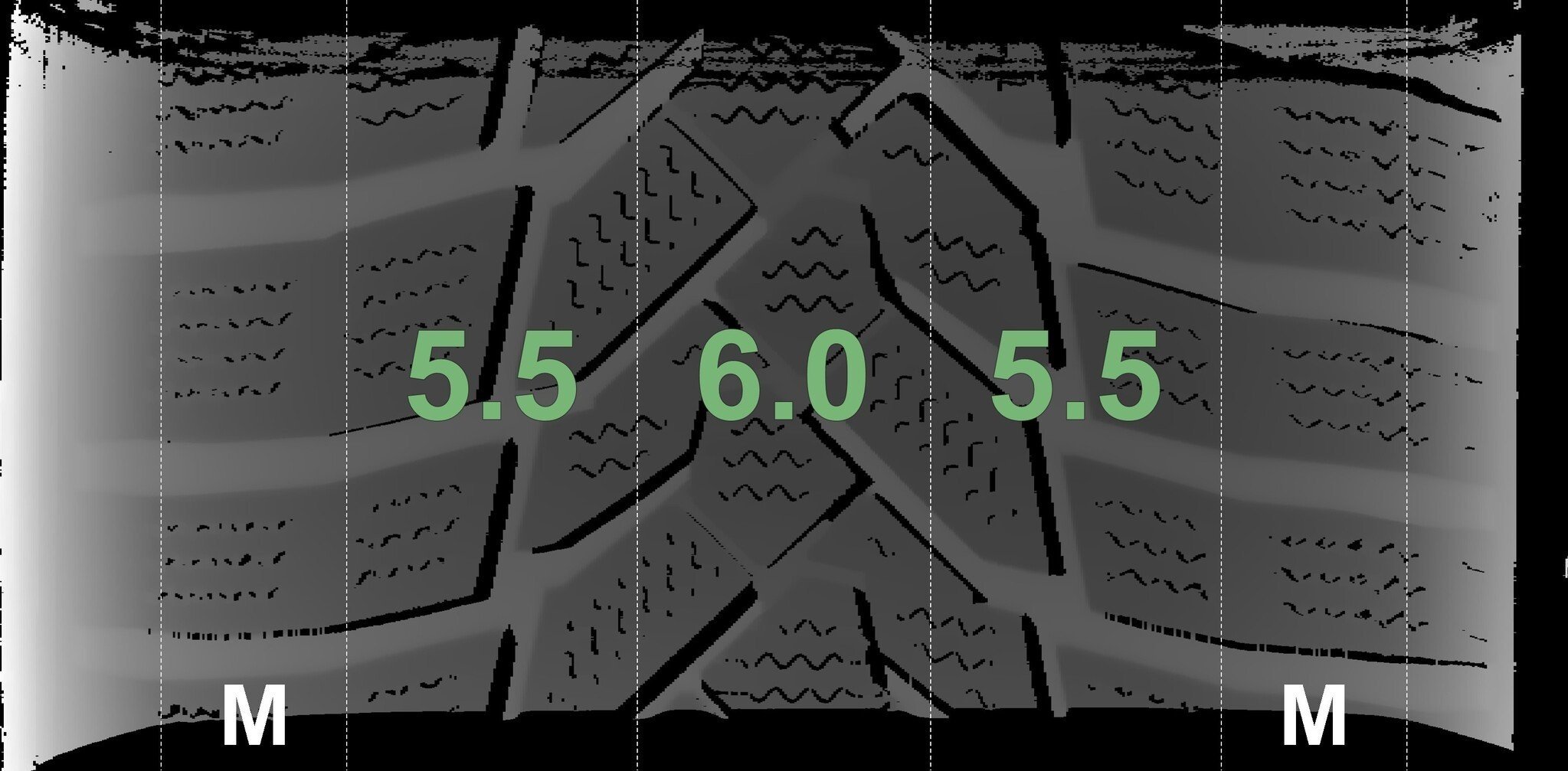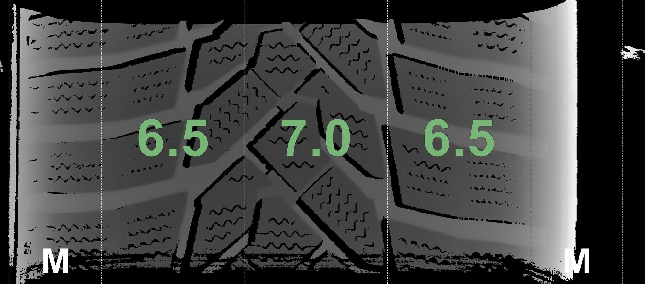 De gemeten profieldieptes en de details van de velgen zijn hierboven weergegeven.