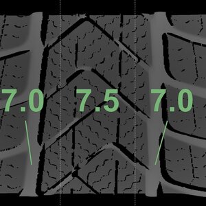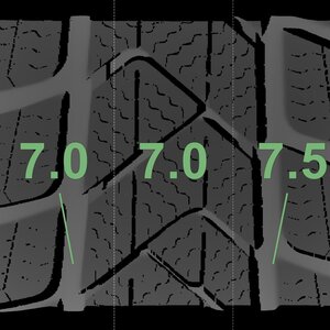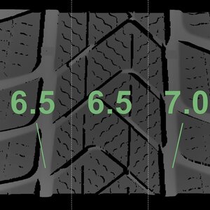 De gemeten profieldieptes en de details van de velgen zijn hierboven weergegeven.