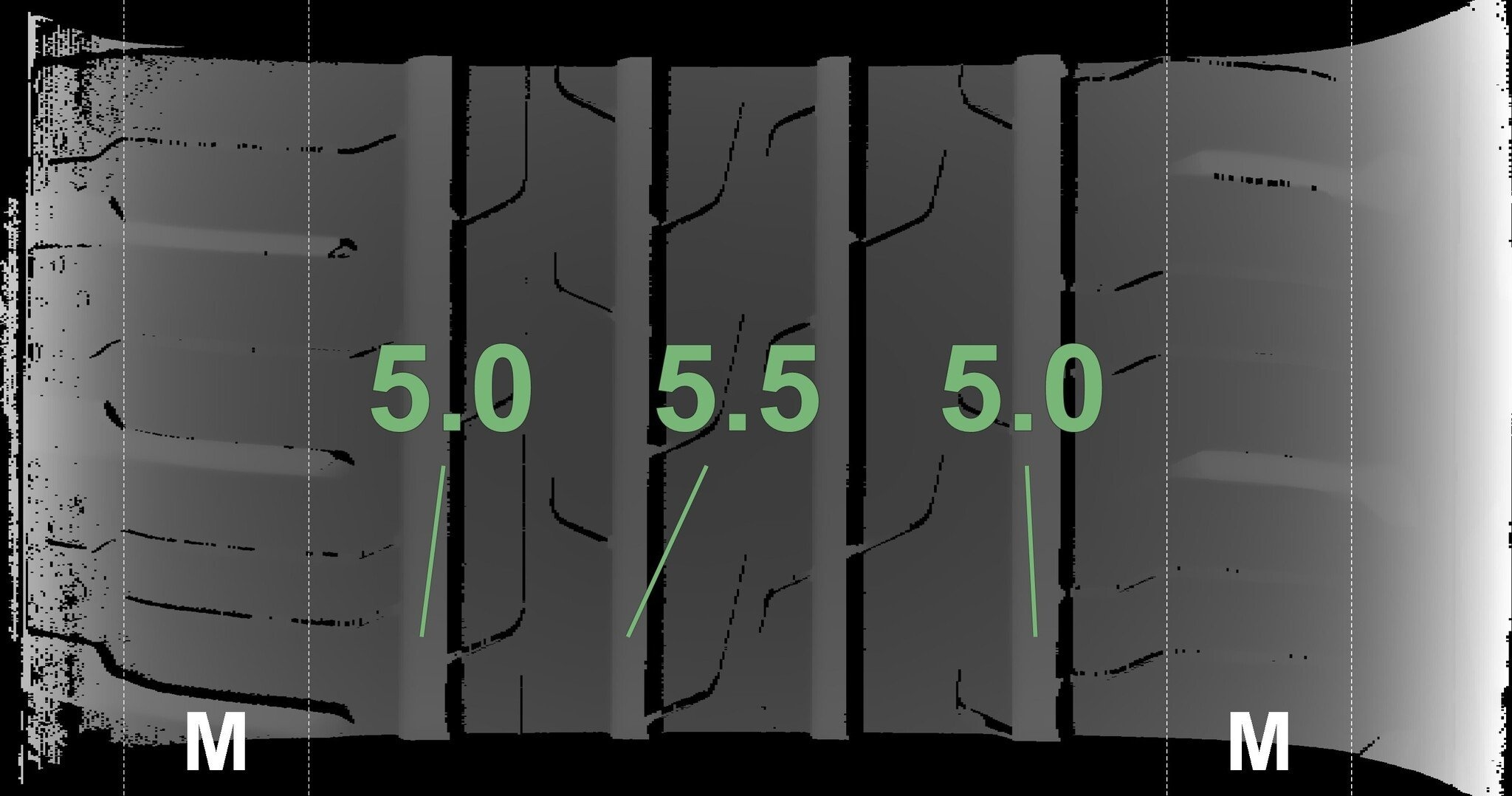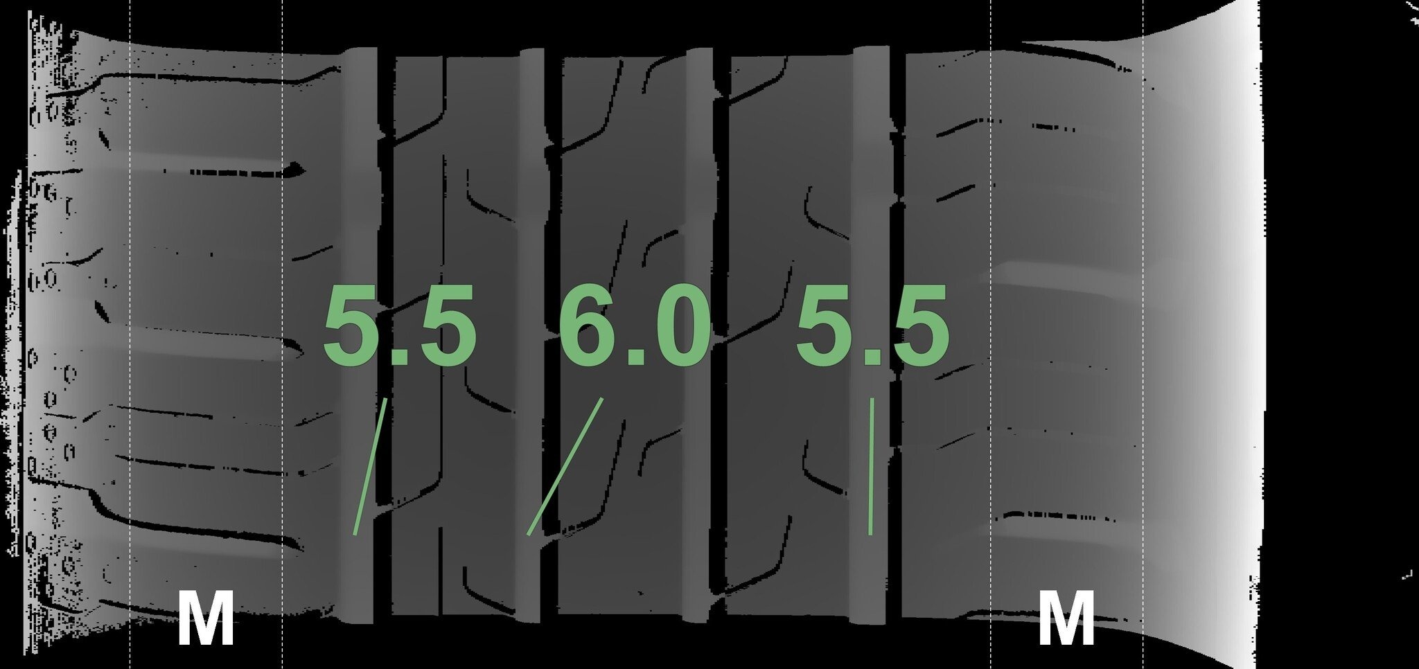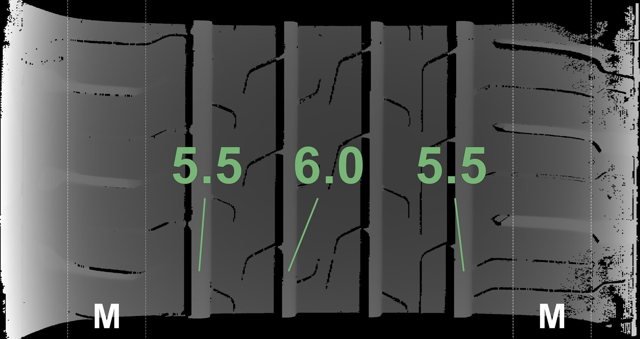 De gemeten profieldieptes en de details van de velgen zijn hierboven weergegeven.