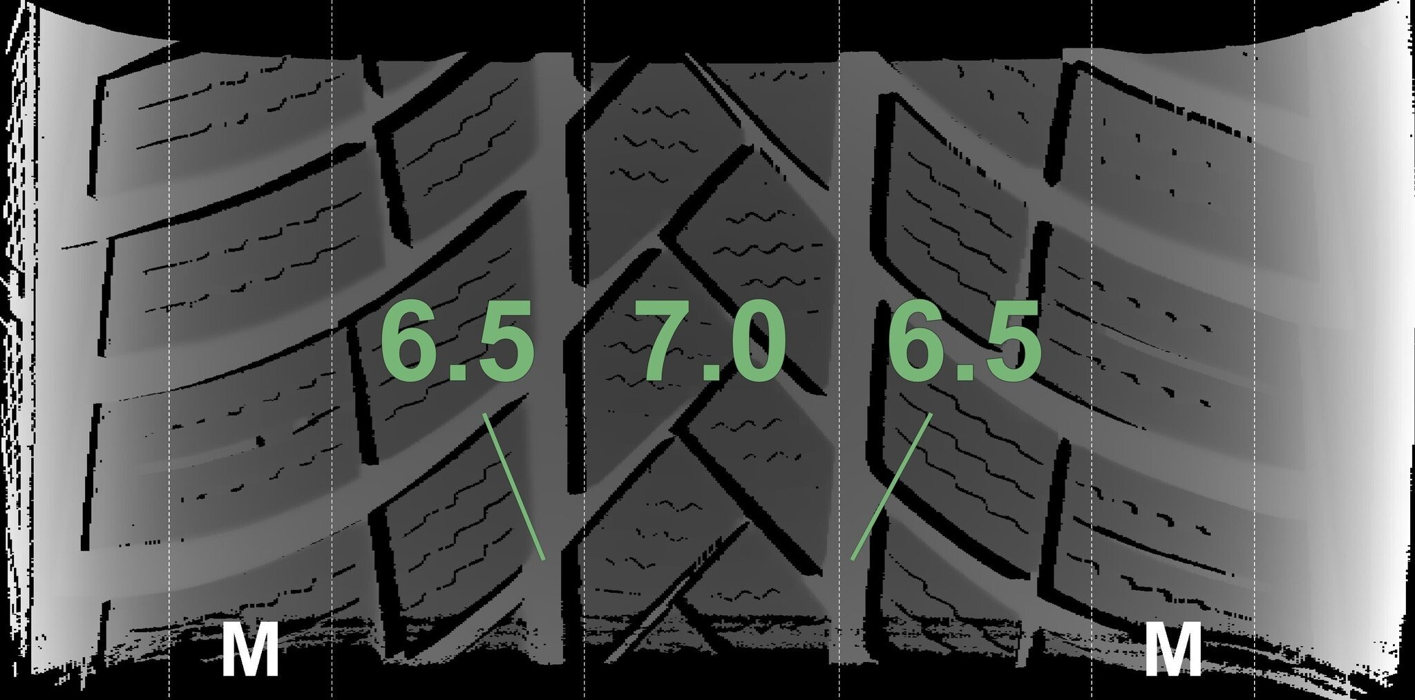 De gemeten profieldieptes en de details van de velgen zijn hierboven weergegeven.