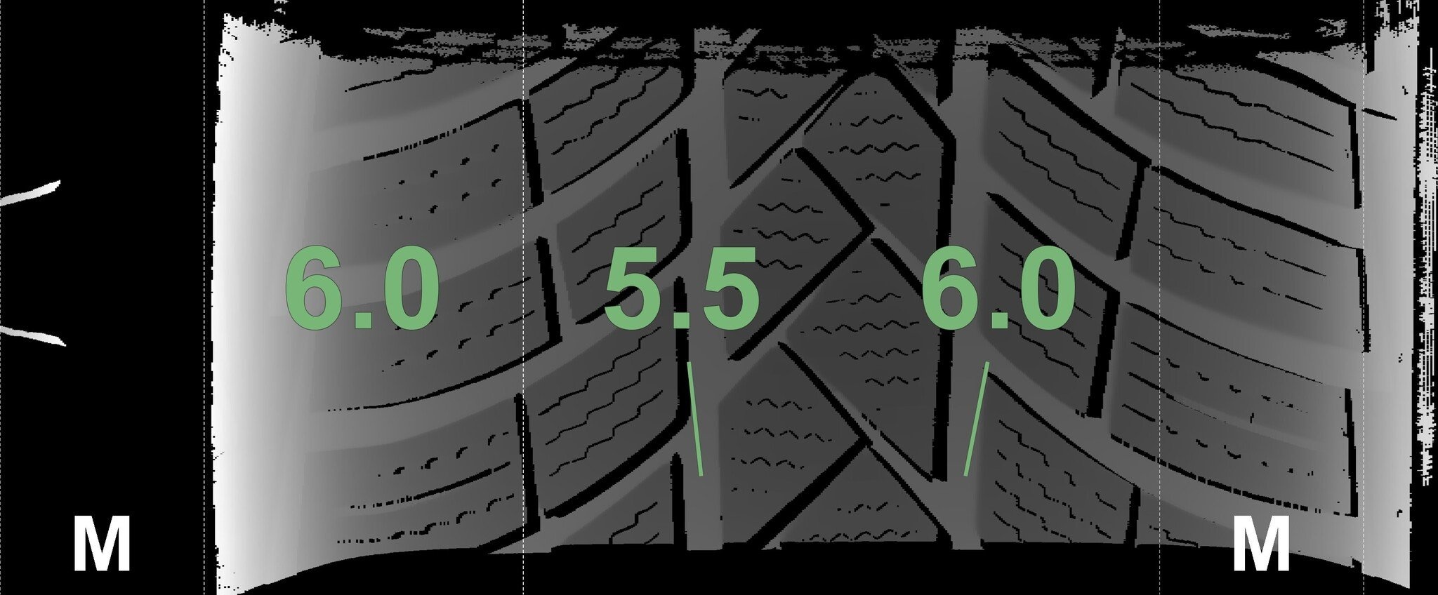 De gemeten profieldieptes en de details van de velgen zijn hierboven weergegeven.