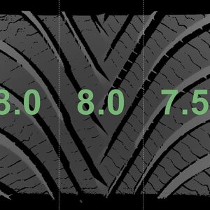 De gemeten profieldieptes en de details van de velgen zijn hierboven weergegeven.