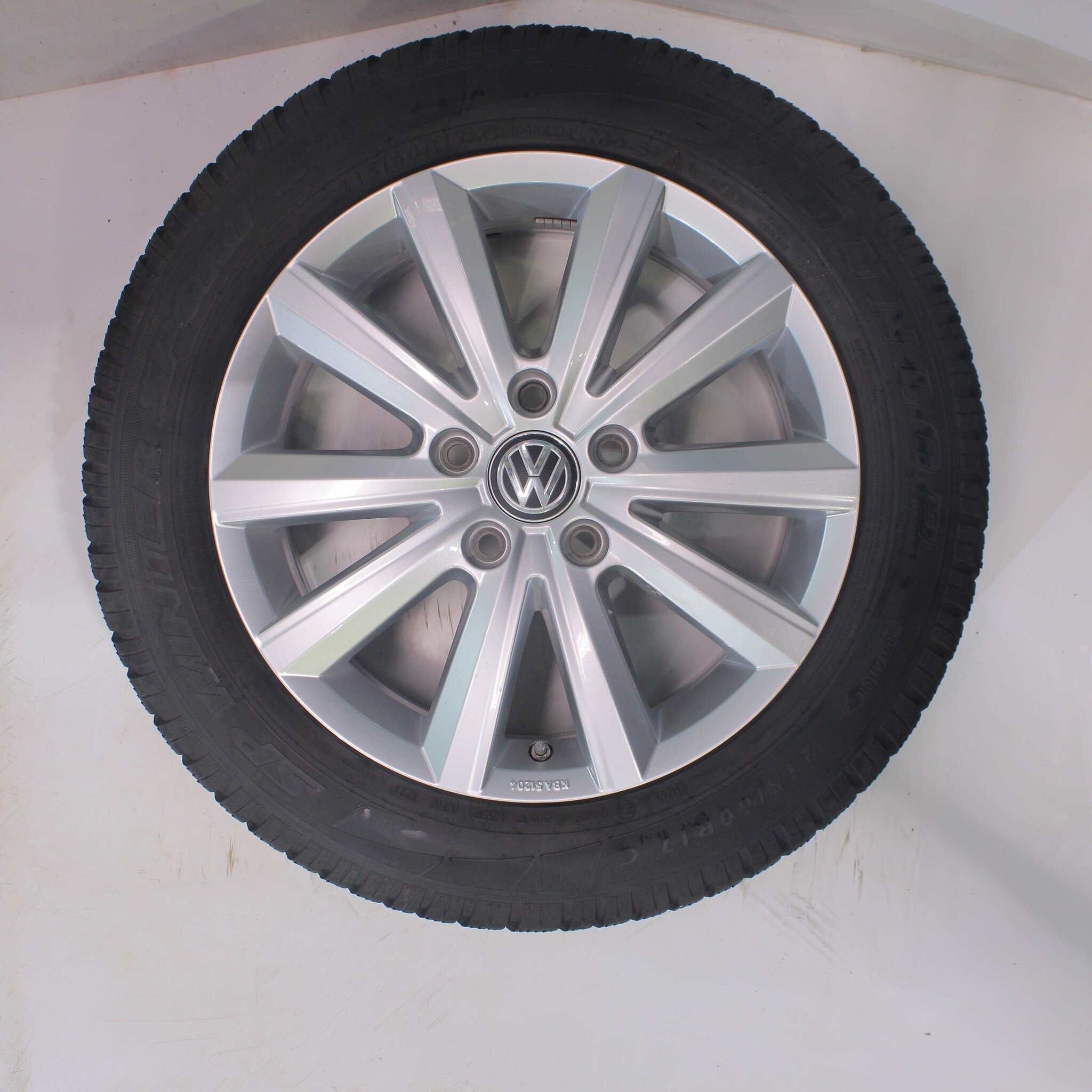 Originele wielset van Volkswagen, styling Merano, 17 inch velgen met Dunlop SPWintersport 4D Winterbanden. Deze velgen zijn originele velgen van het merk Volkswagen en geschikt voor: Volkswagen Transporter T6.
