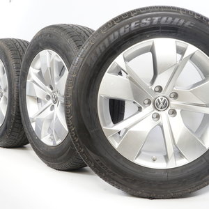 Gebruikte set originele Volkswagen Touareg 3Ā velgen 18Ā inch met Bridgestone Dueler H/P Sport Zomerbanden. Deze velgen zijn originele velgen van het merk Volkswagen en geschikt voor de Volkswagen Touareg 3. Twee van de velgen verkeren in nieuwstaat en twee van de velgen vertonen lakschade.